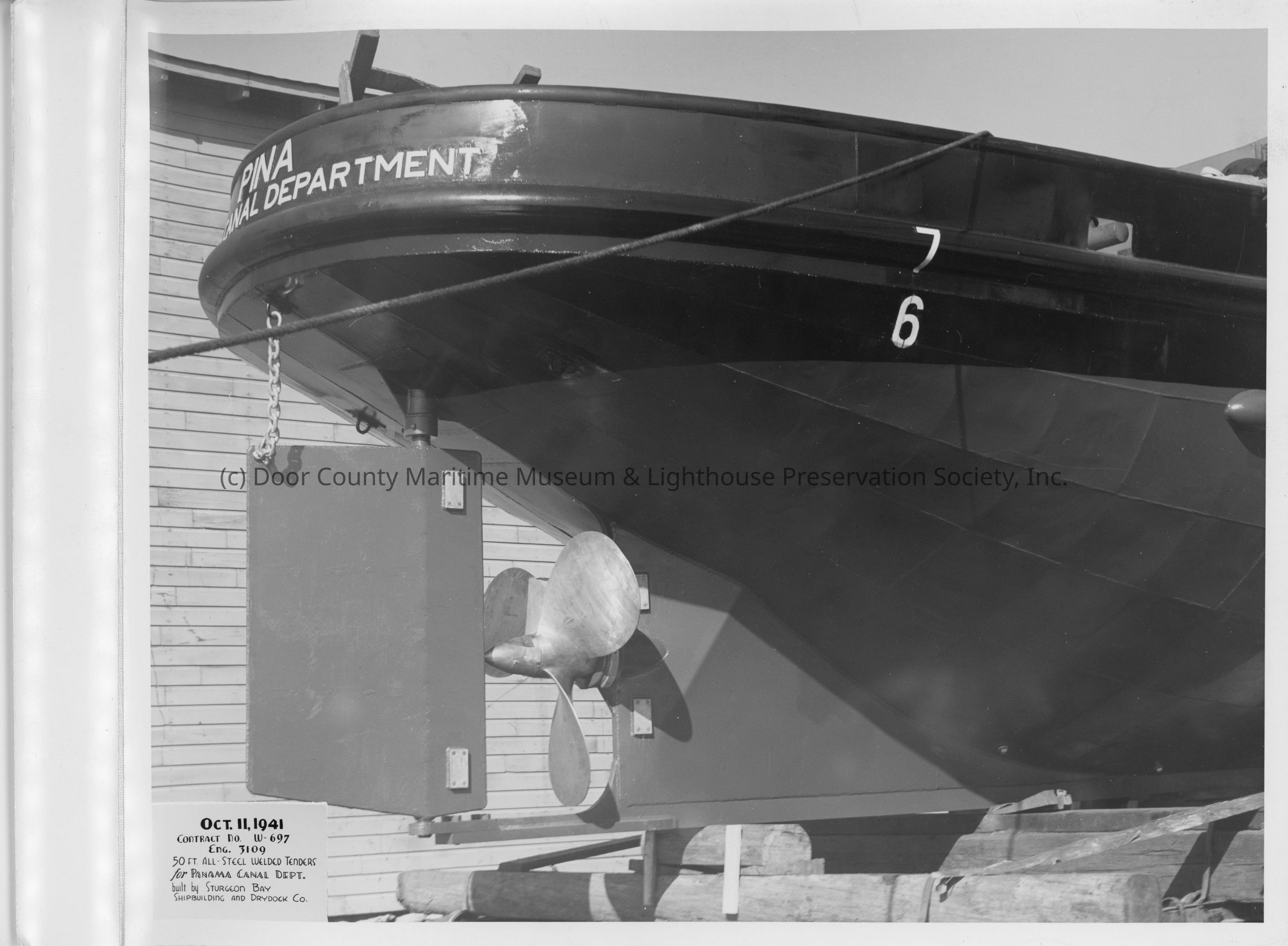 Stern view of the Pina at Sturgeon Bay Shipbuilding and Drydock Co. October 11, 1941Entry/Object ID