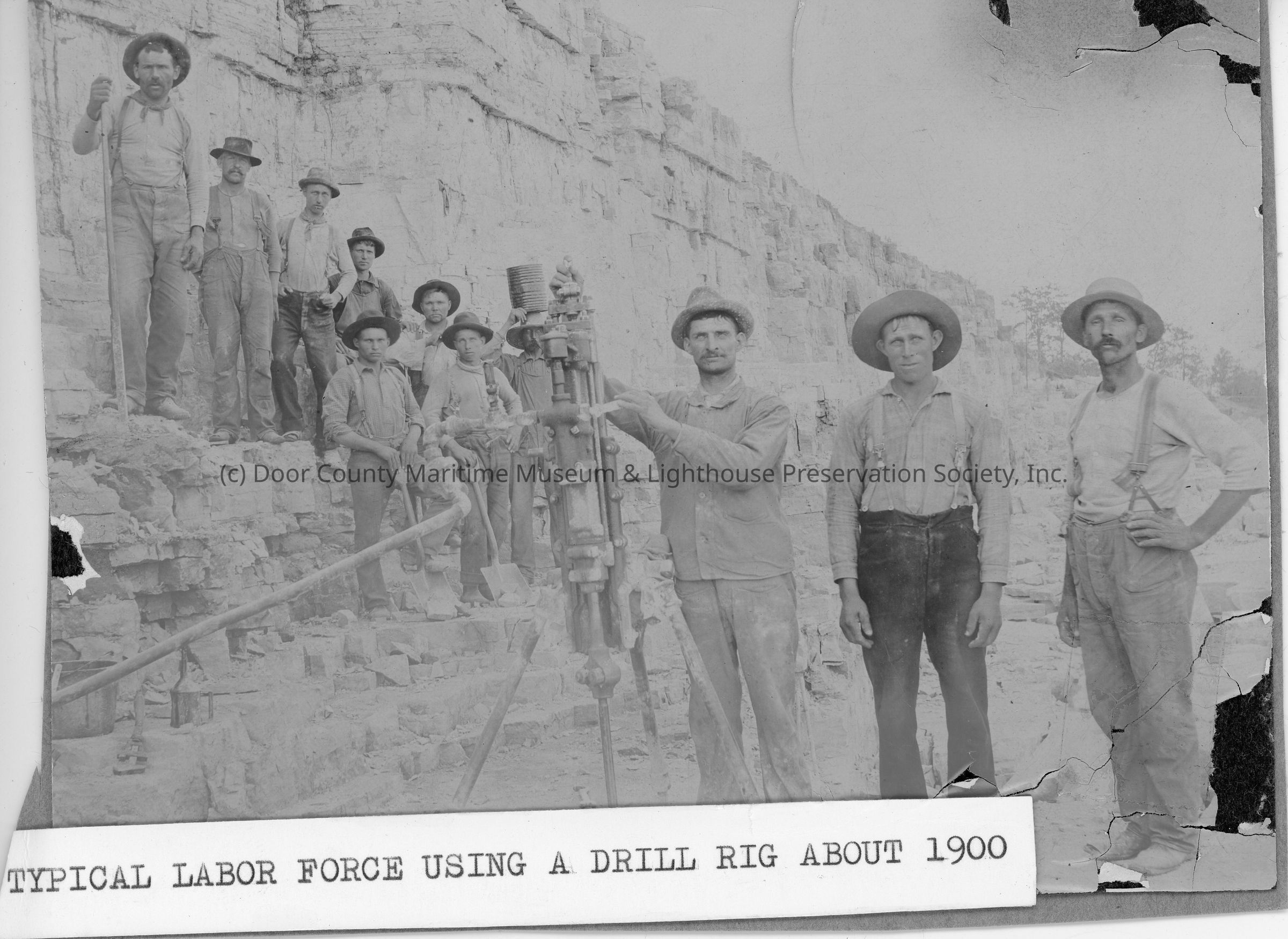 Stone quarry typical labor force using a drill rig around 1900