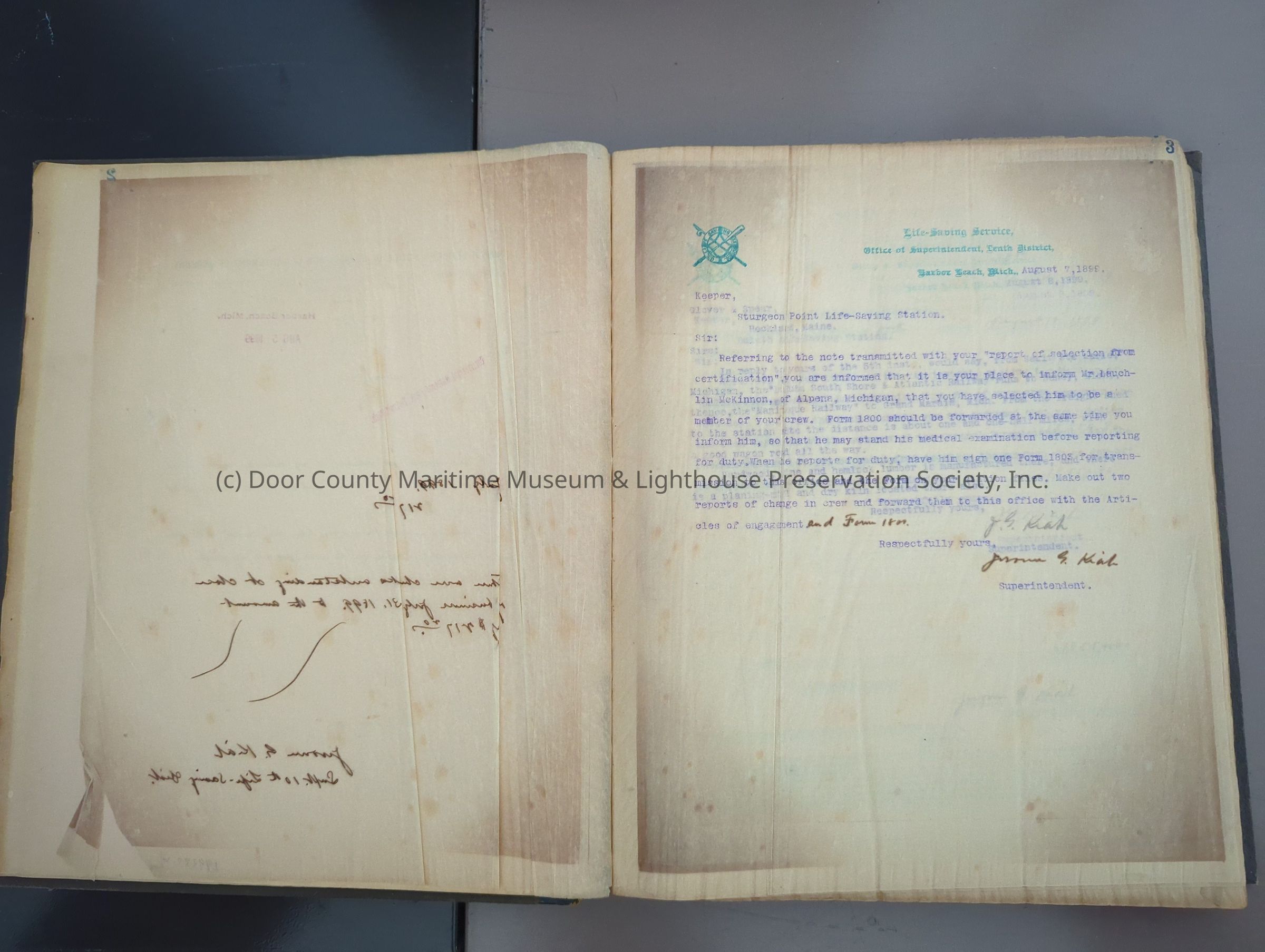 Sturgeon Bay life saving service station correspondence 1899-1900