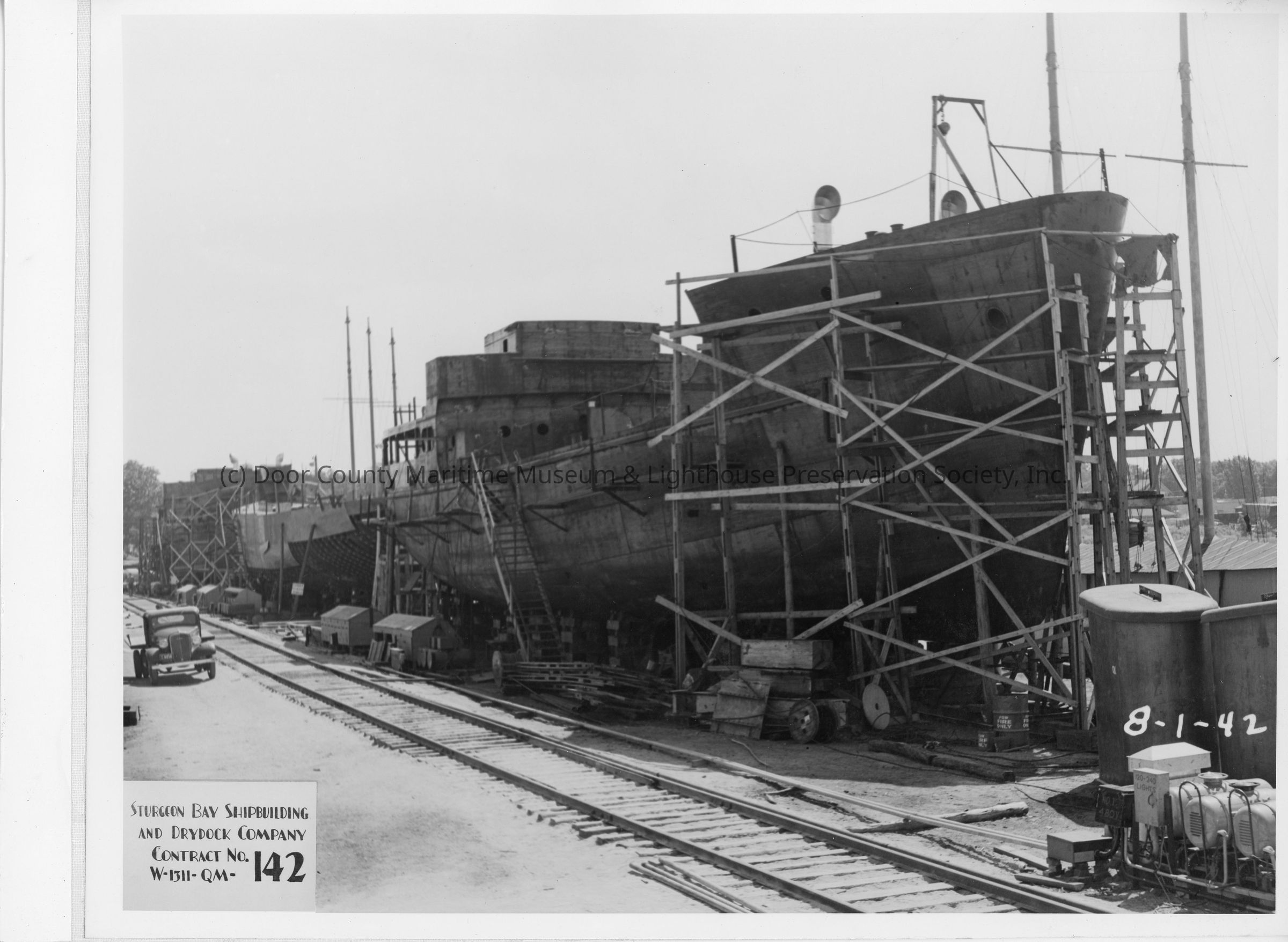 Sturgeon Bay Shipbuilding and Drydock Company contract number 142 in scaffolding August 1, 1942Entry/Object ID