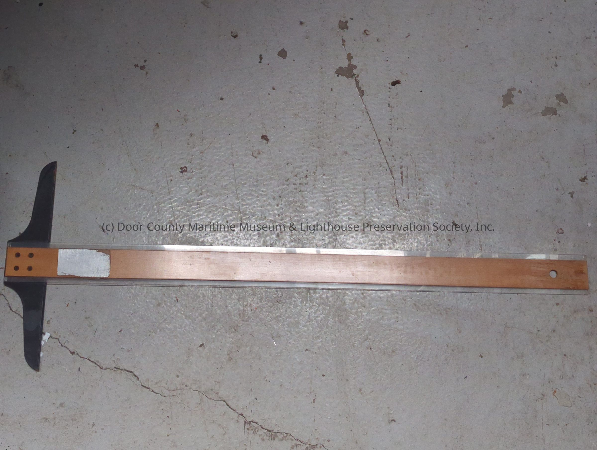 Light brown block with black cross member. Plastic ruling edges with four rivets