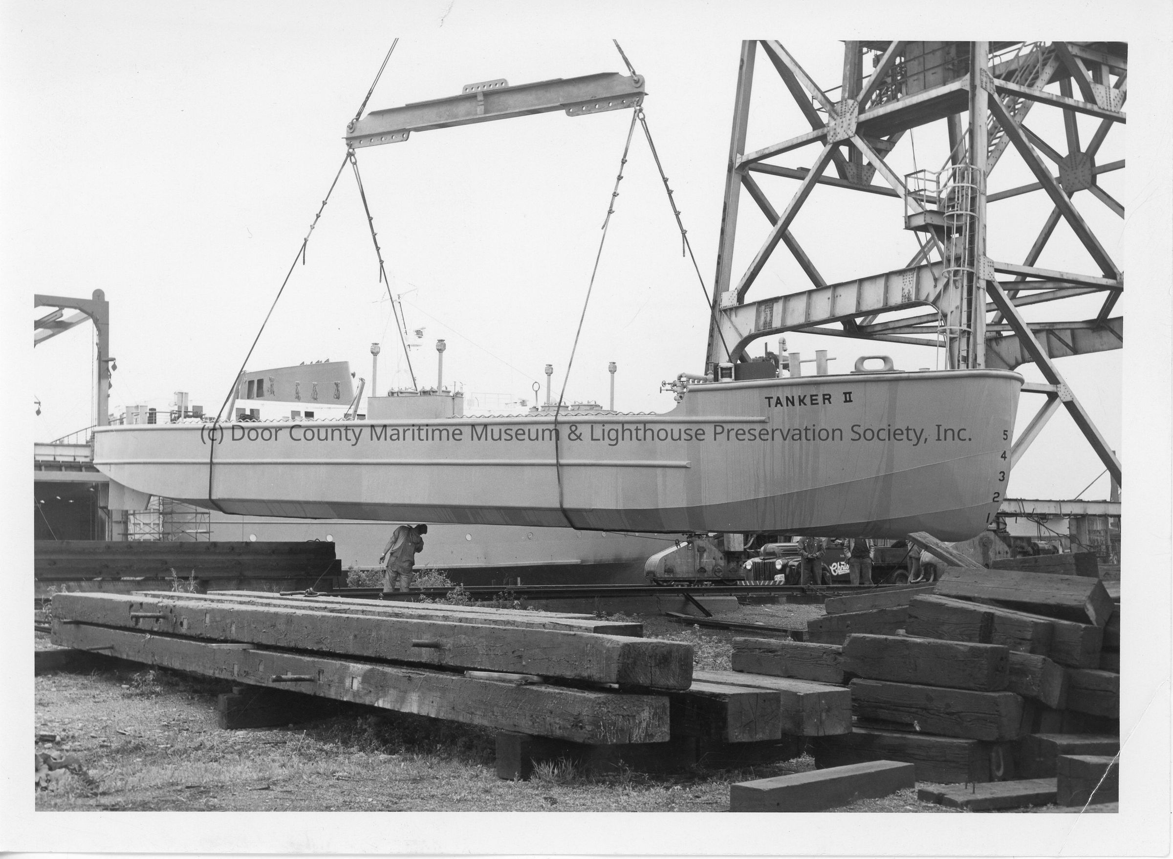 Tanker II being hoisted at Christy Corp