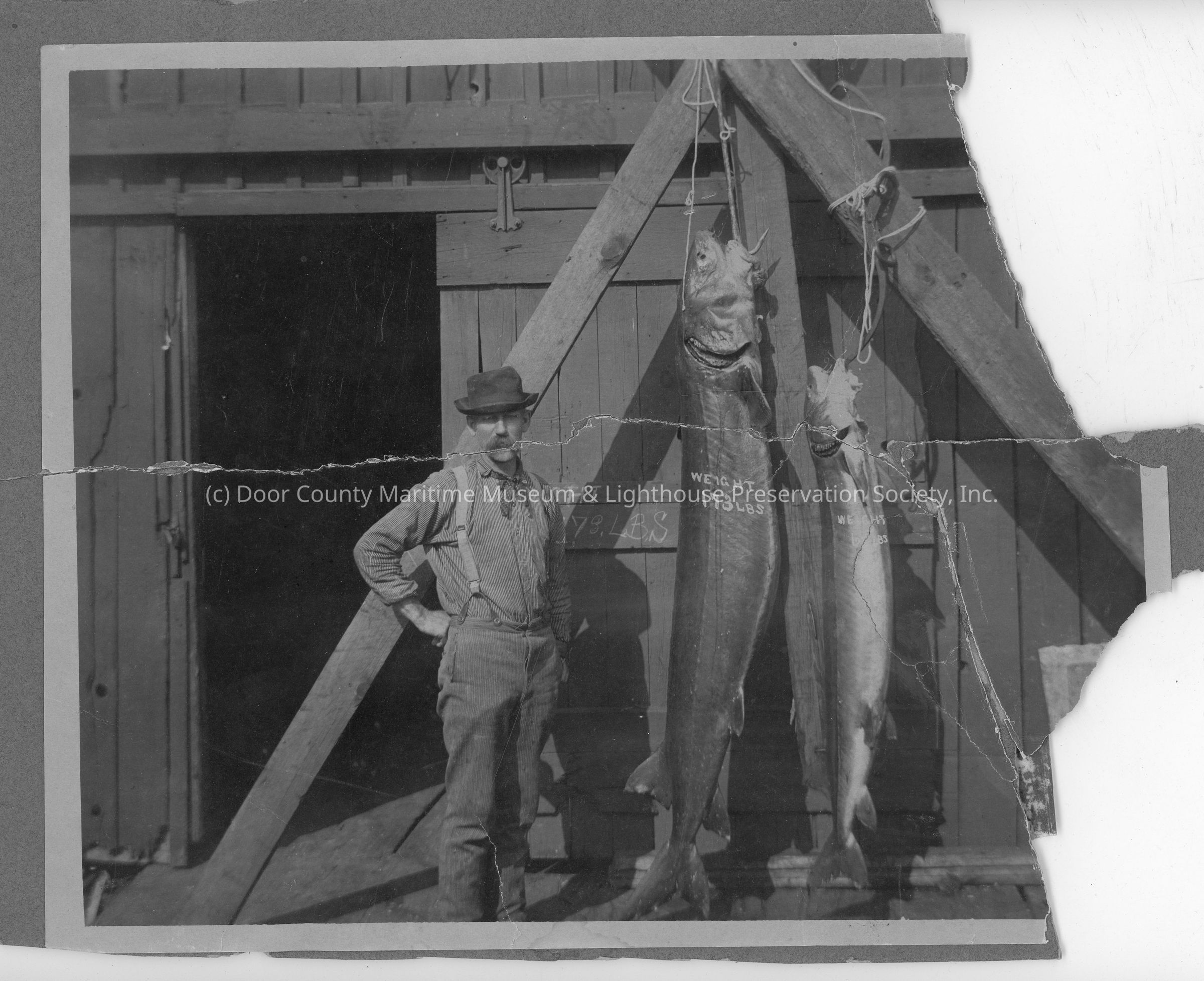 Theodore Delille with two large fish hanging 1908