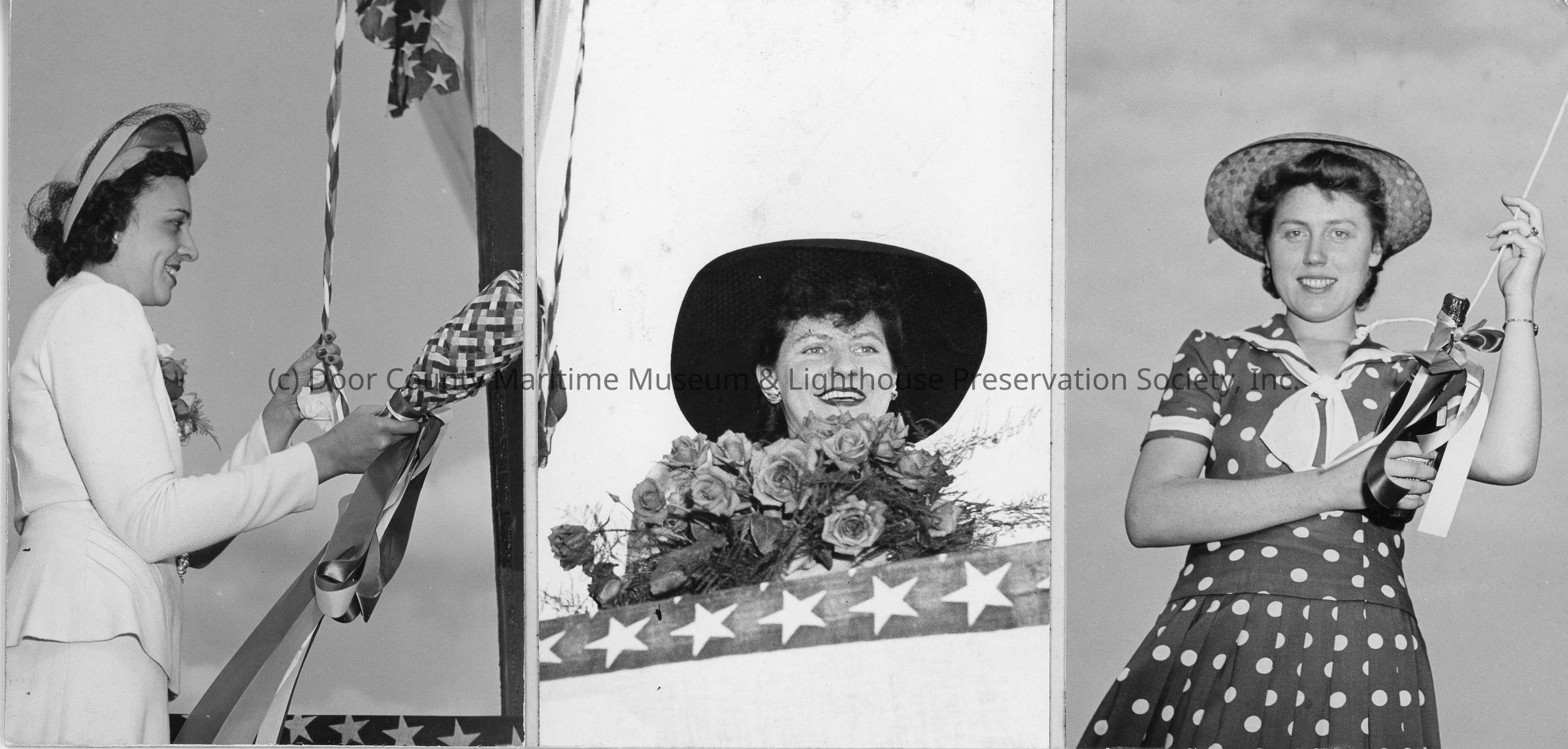 Three photos of Women christening boats