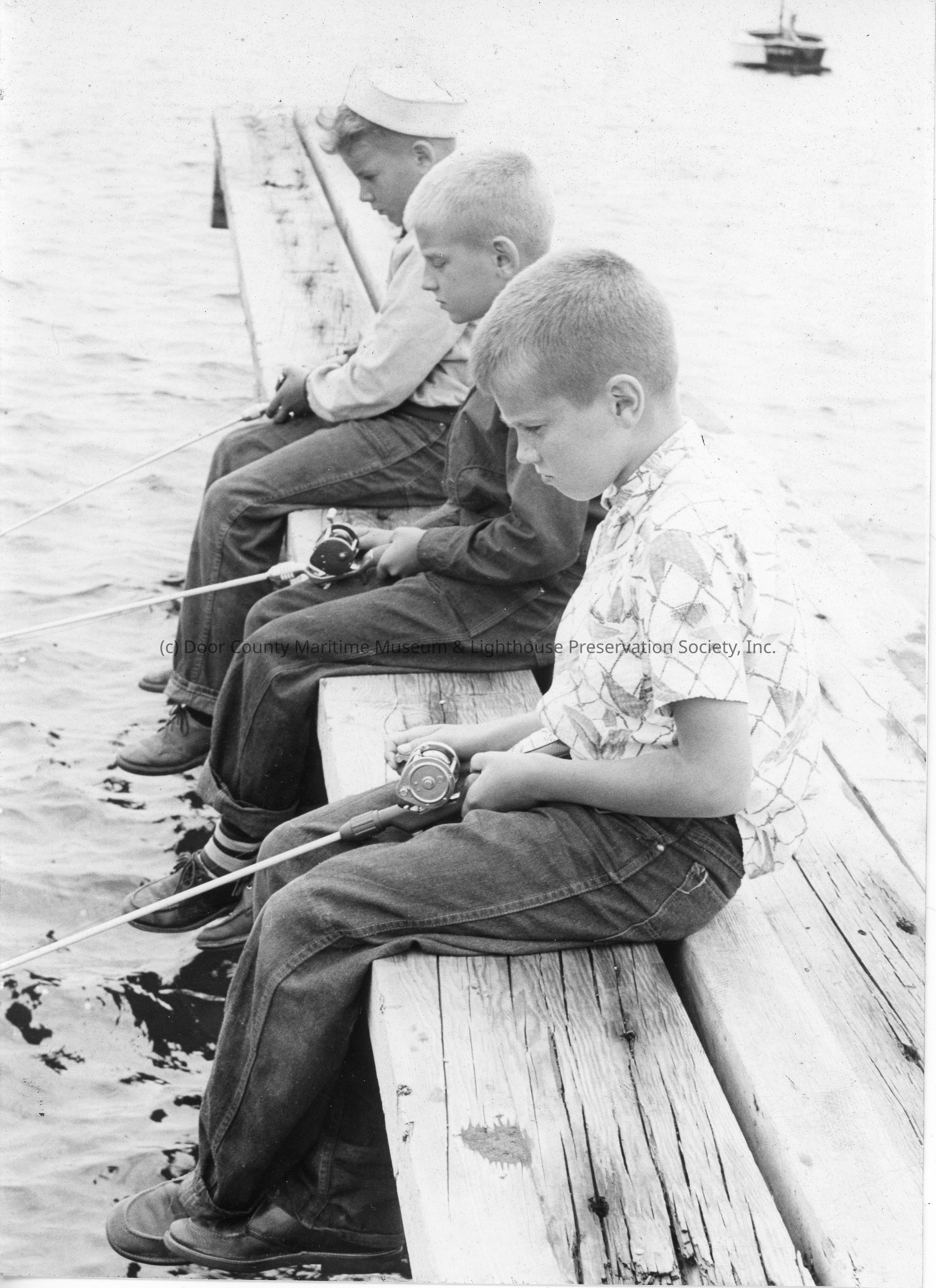three serious boys fishing