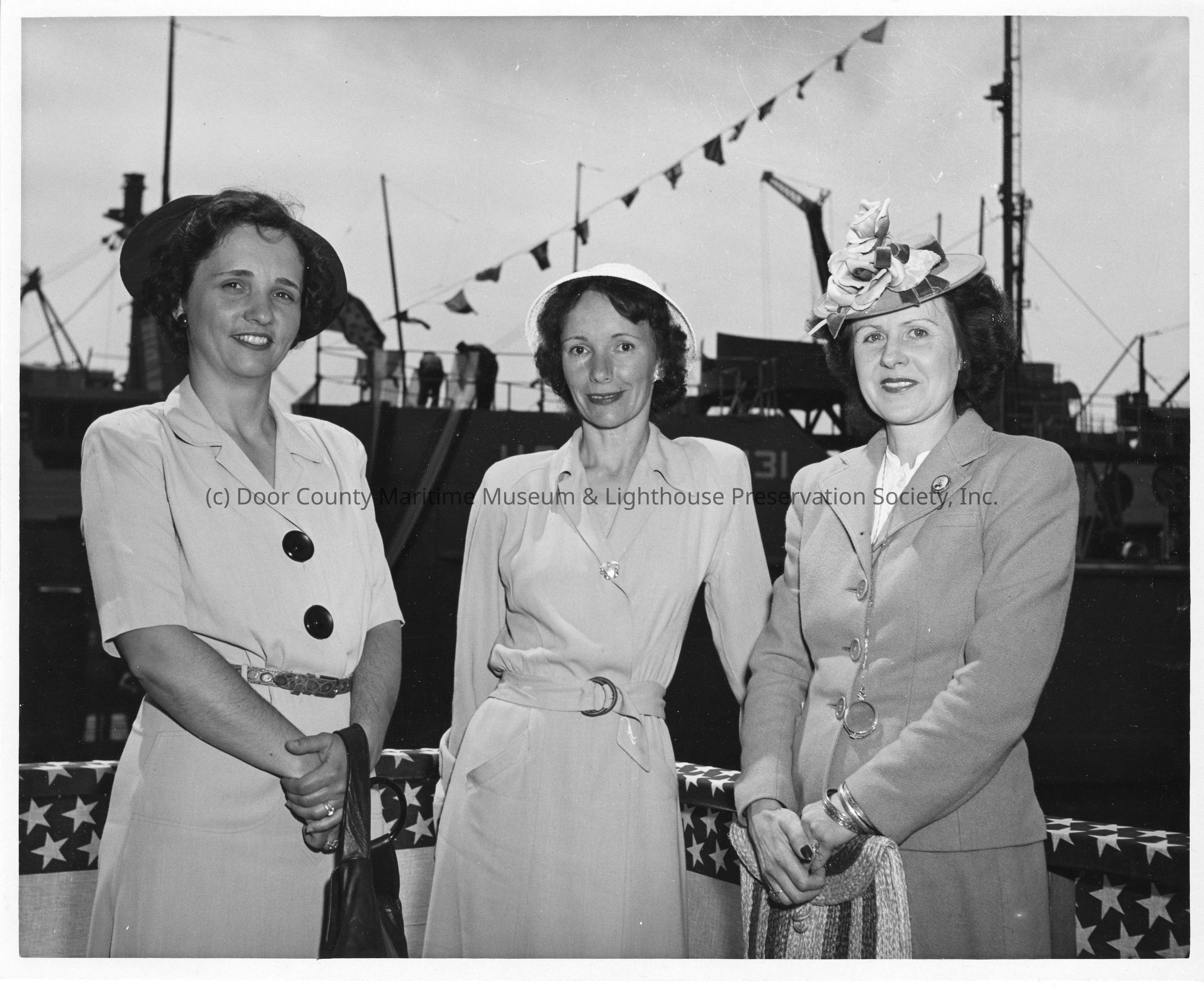 Three women at ship christening