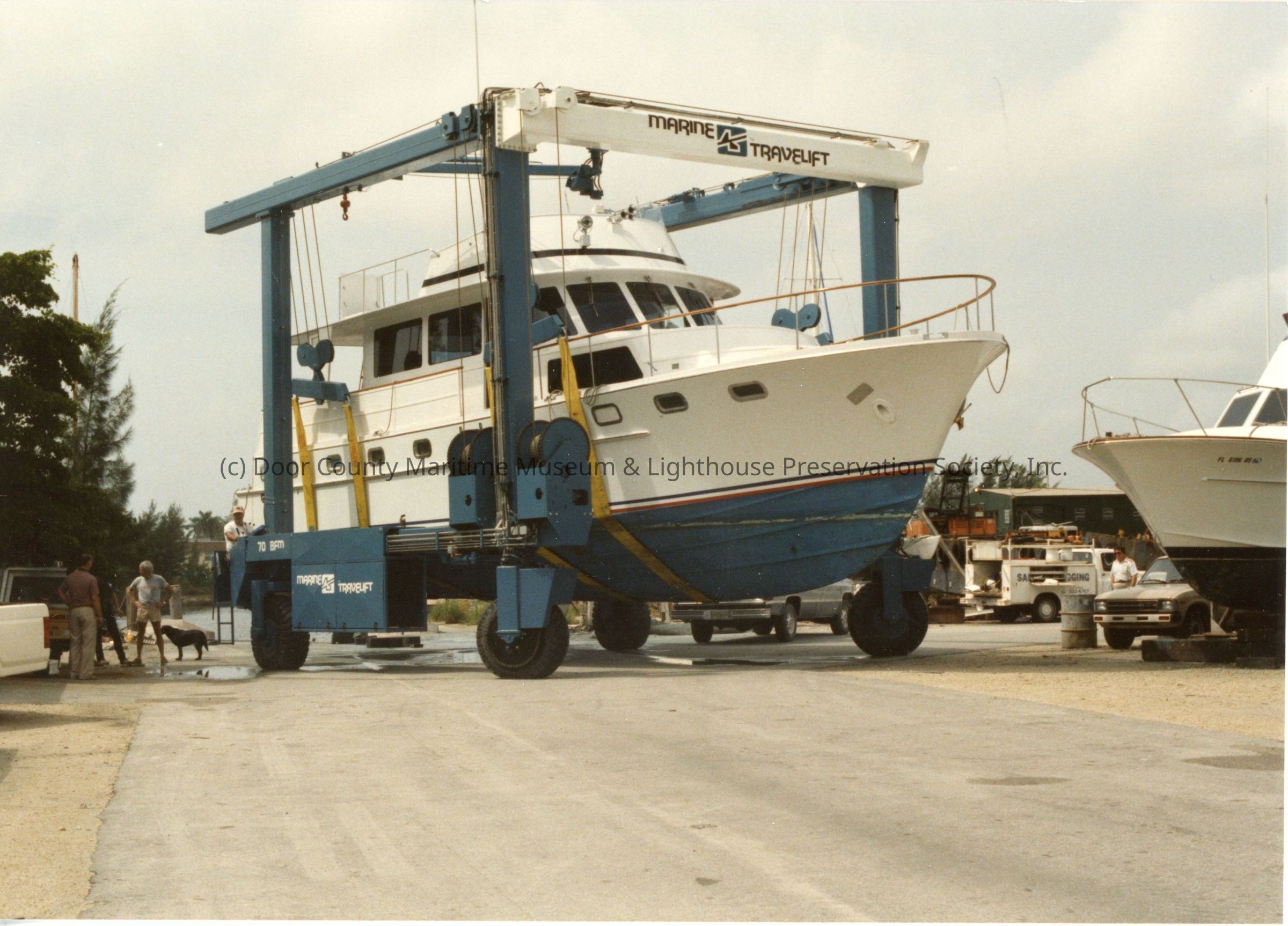 Travelift holding yacht