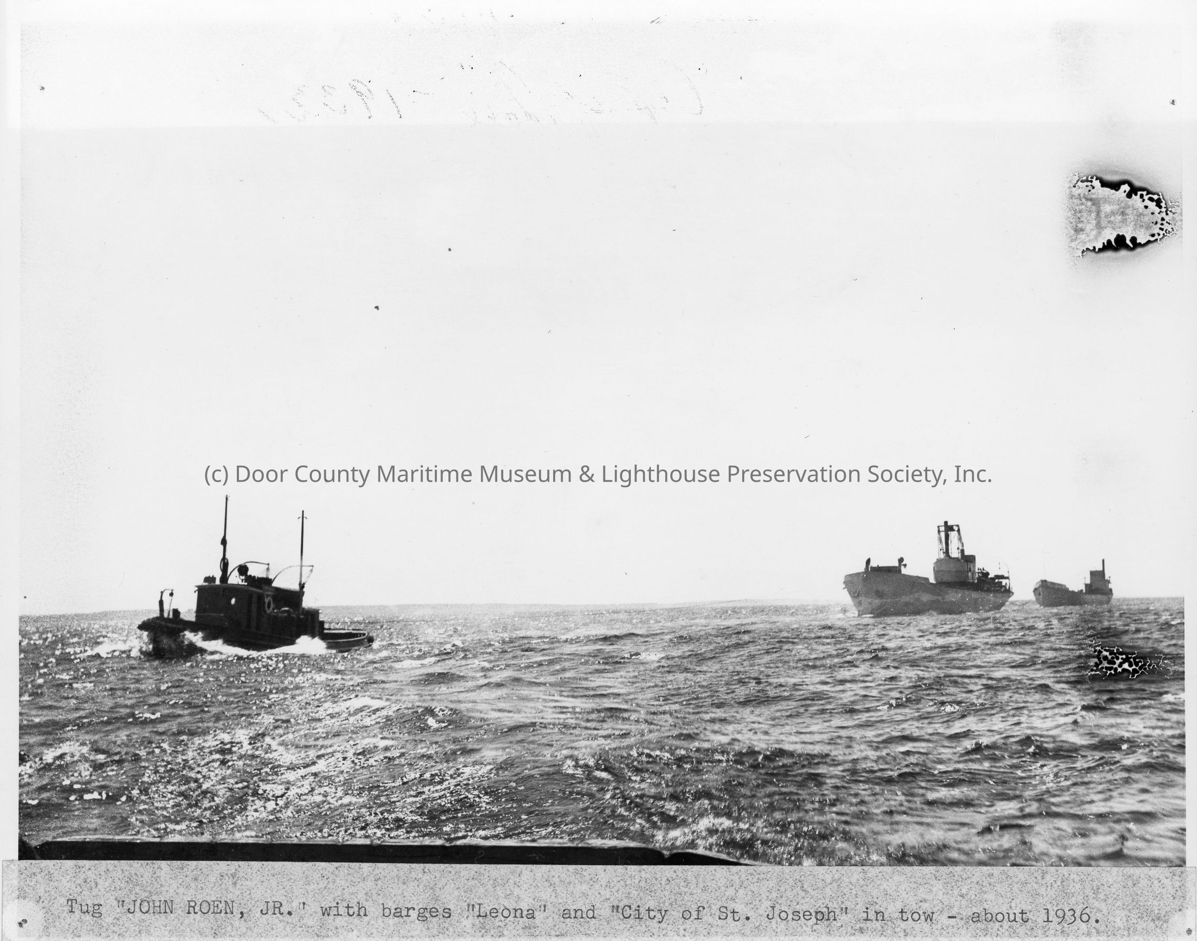 Tug John Roen Jr. towing the barges Leona and City of St. Jospeh 1938Entry/Object ID
