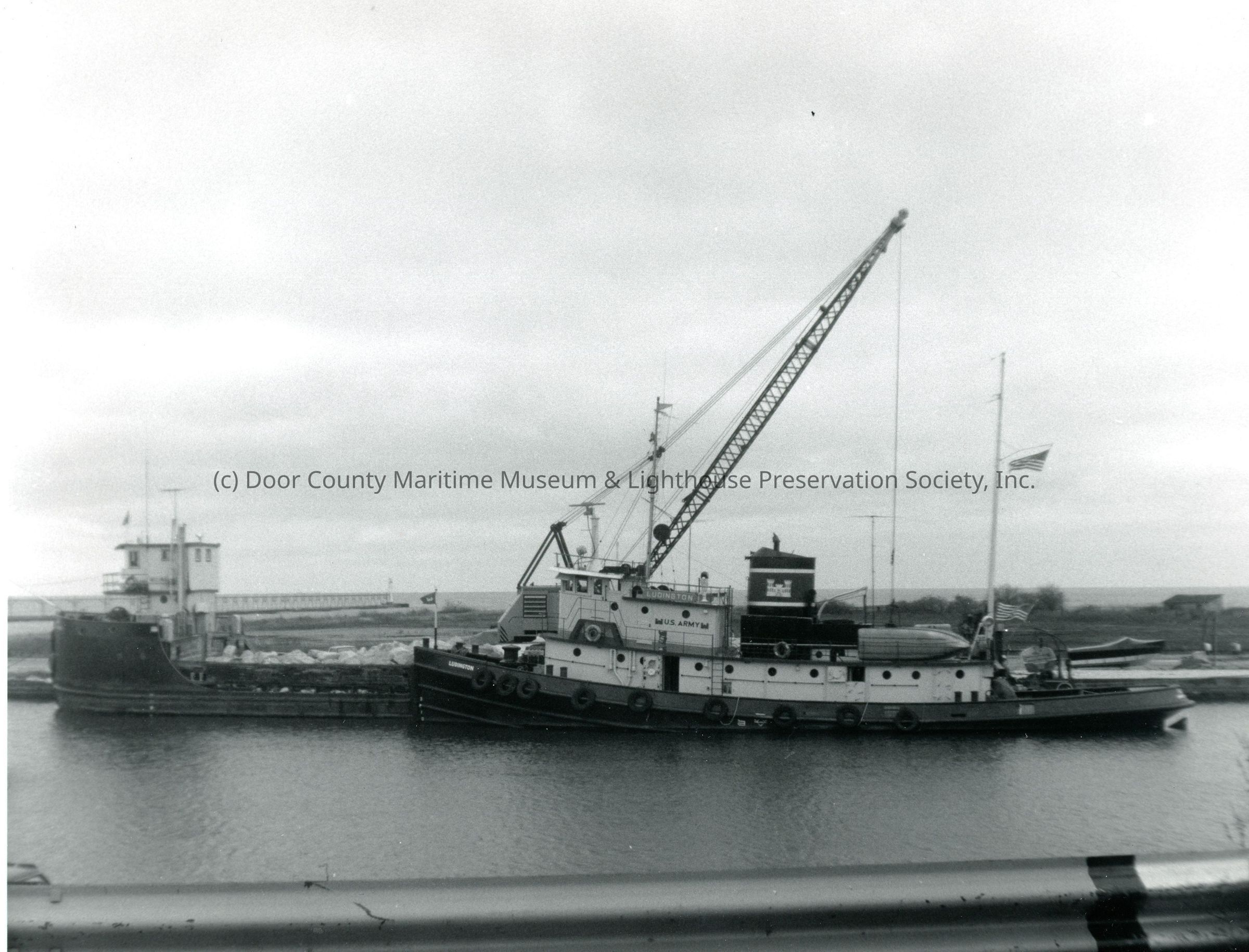 Tug Ludington and barge Milwaukee in Two Rivers 1975