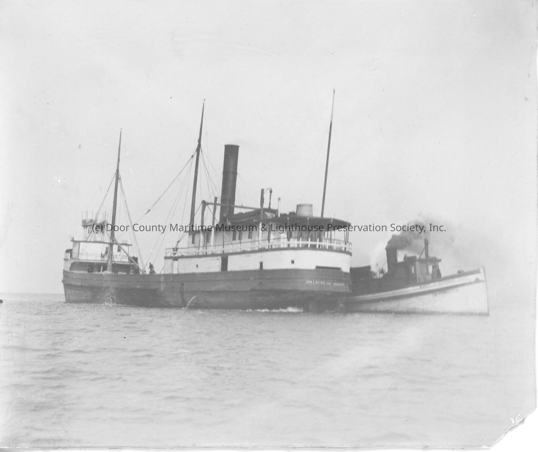 Tugboat next to steamship