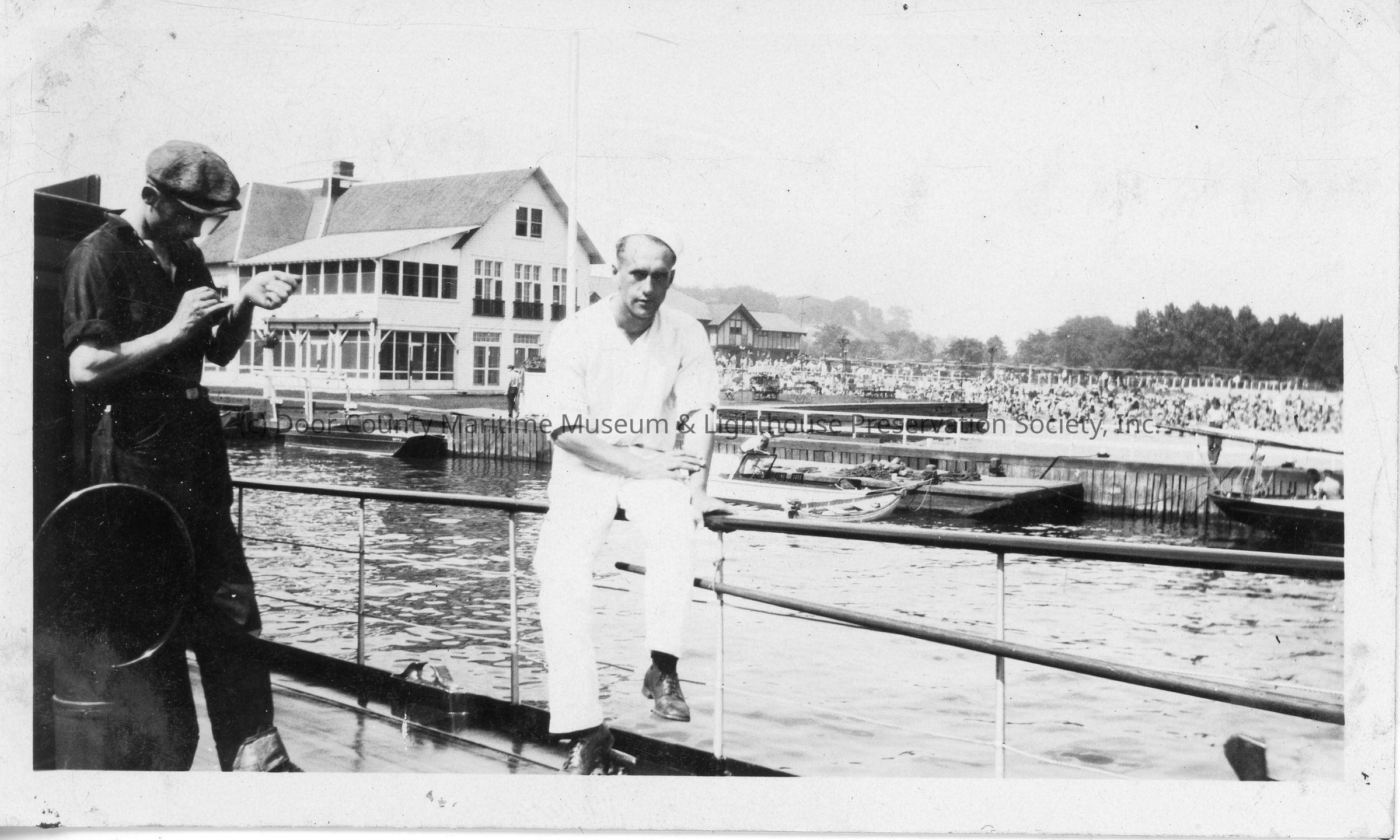 Two men on deck of boat
