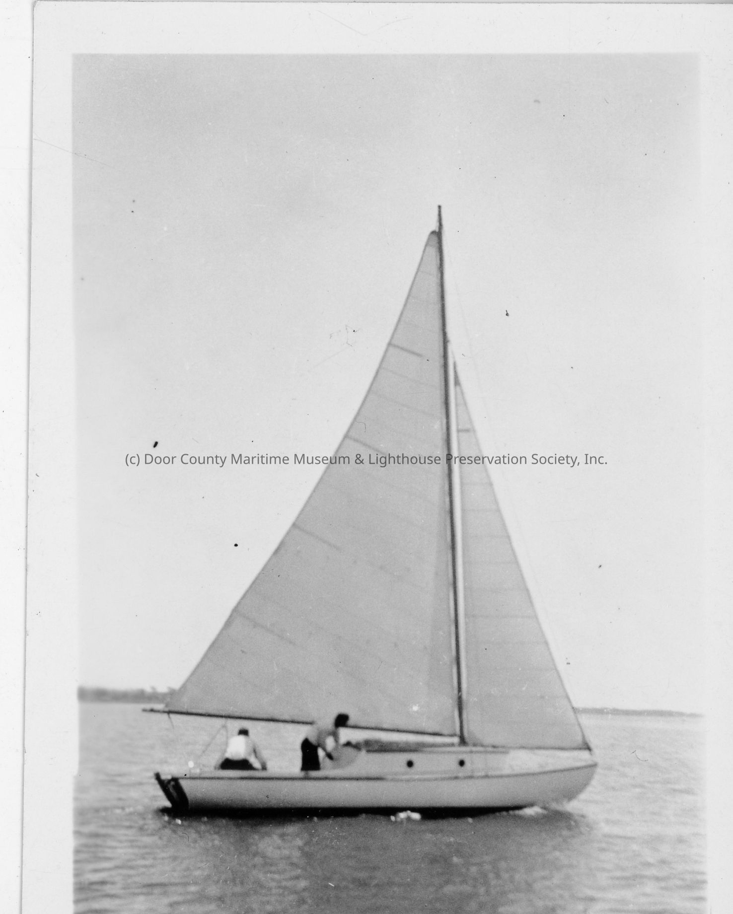 Two people on 23' sailboat underway