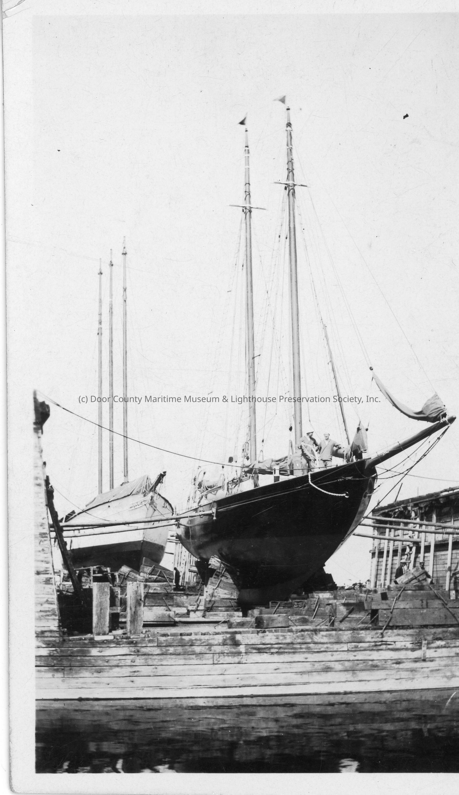 Two sailing vessels in dry dock