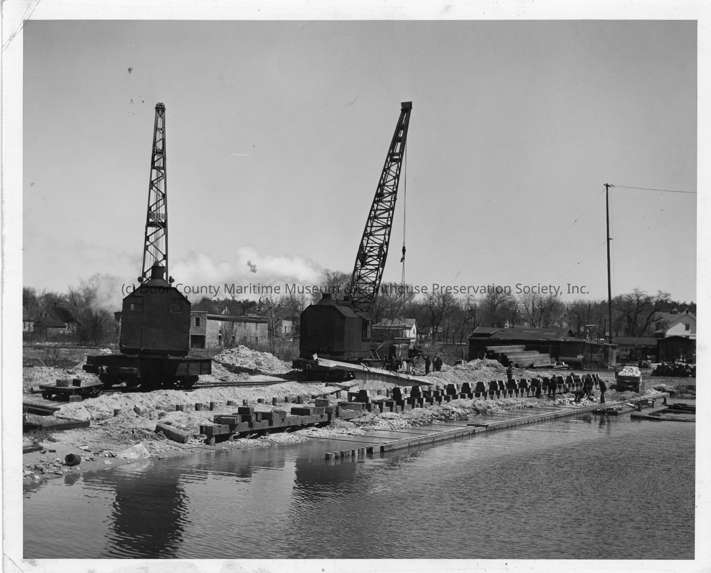 Two small cranes at work at Leathem D. Smith Shipbuilding Co. 1942Entry/Object ID