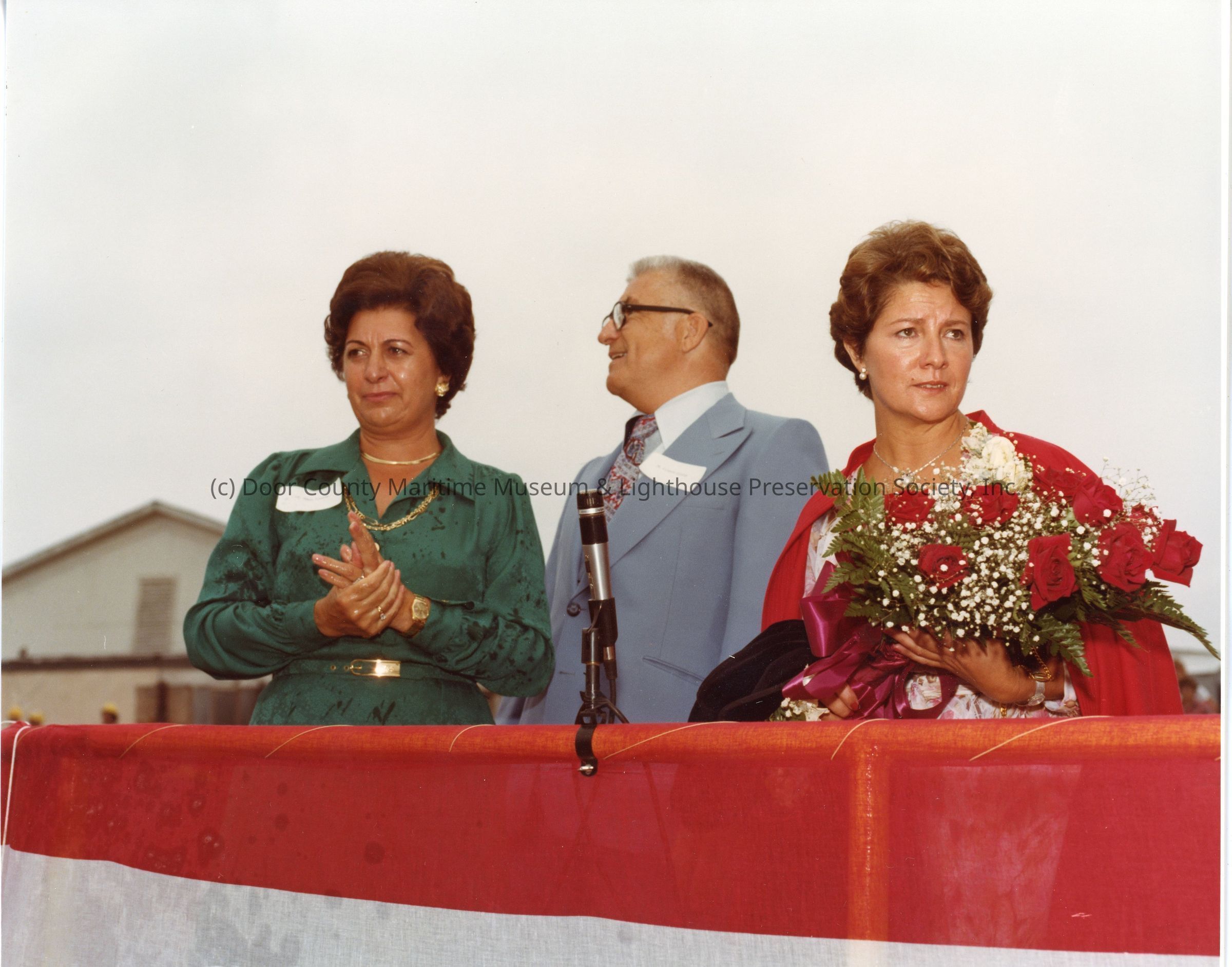 Two women and Ellsworth Peterson during christening of Napolean