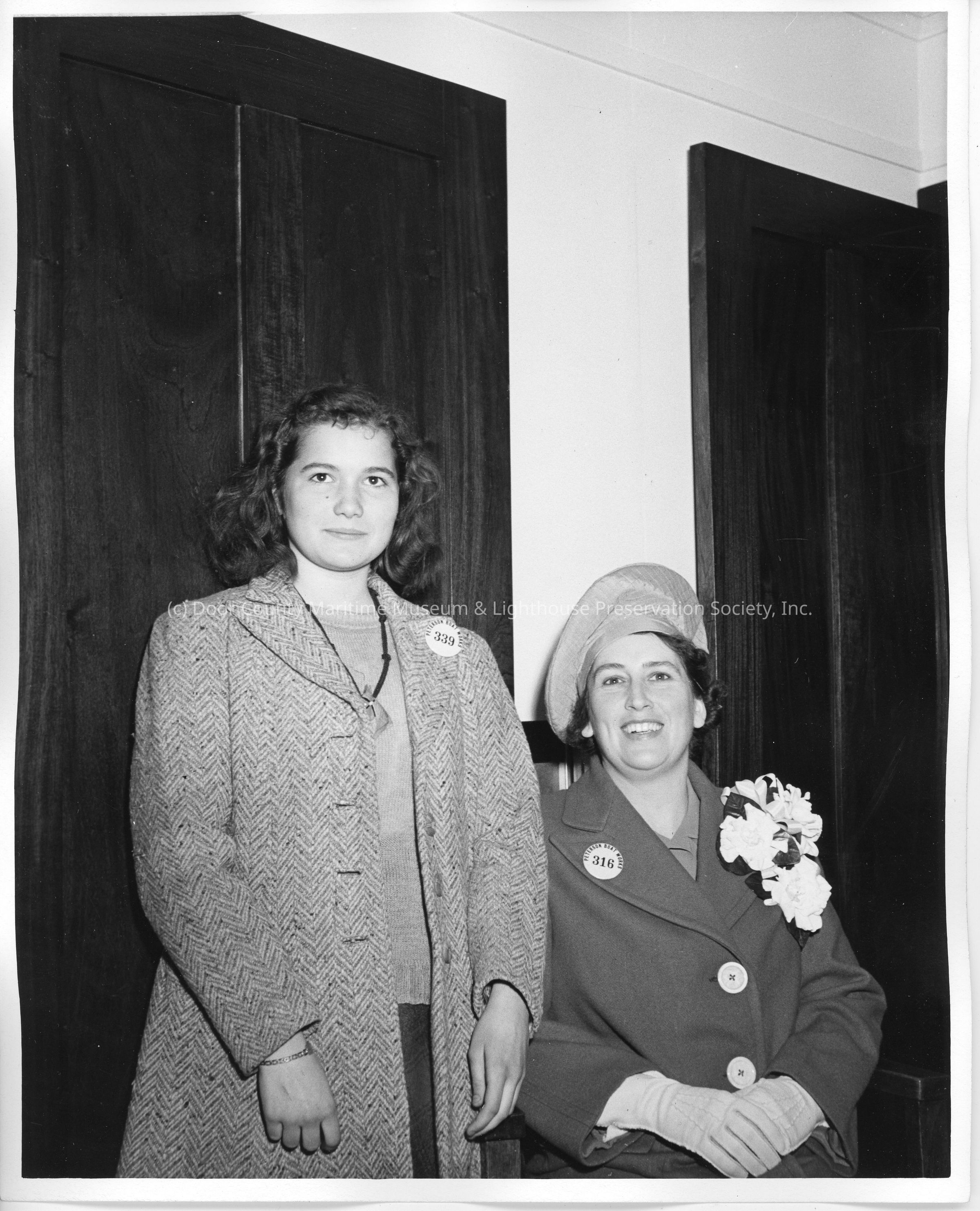 Two women in Peterson Boat Works office at christening of SC-1035 April 12, 1943Entry/Object ID