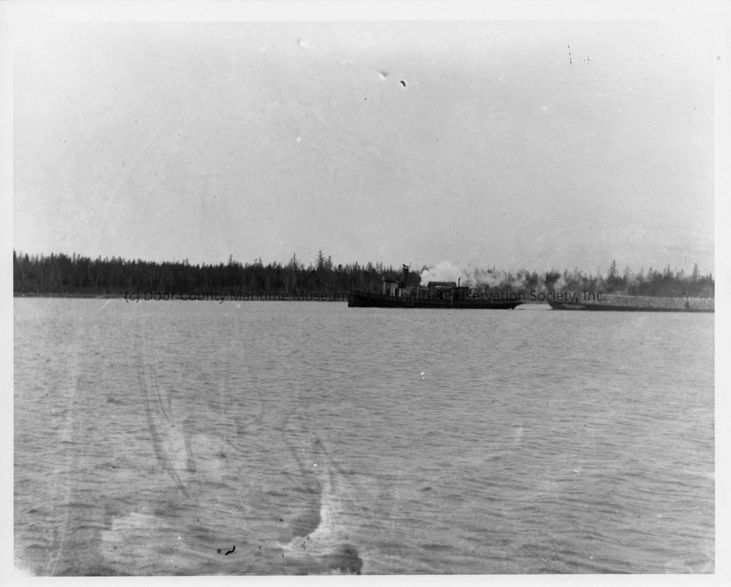 Unidentified vessel towing boarge with lumber