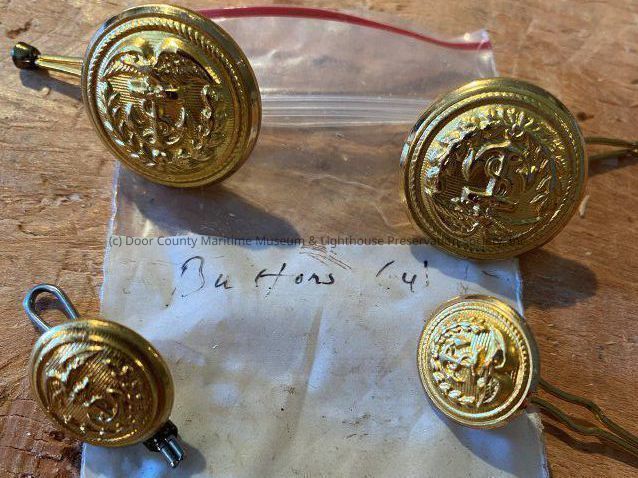 Four brass U.S. Navy uniform jacket buttons. Two breast and two sleeve.