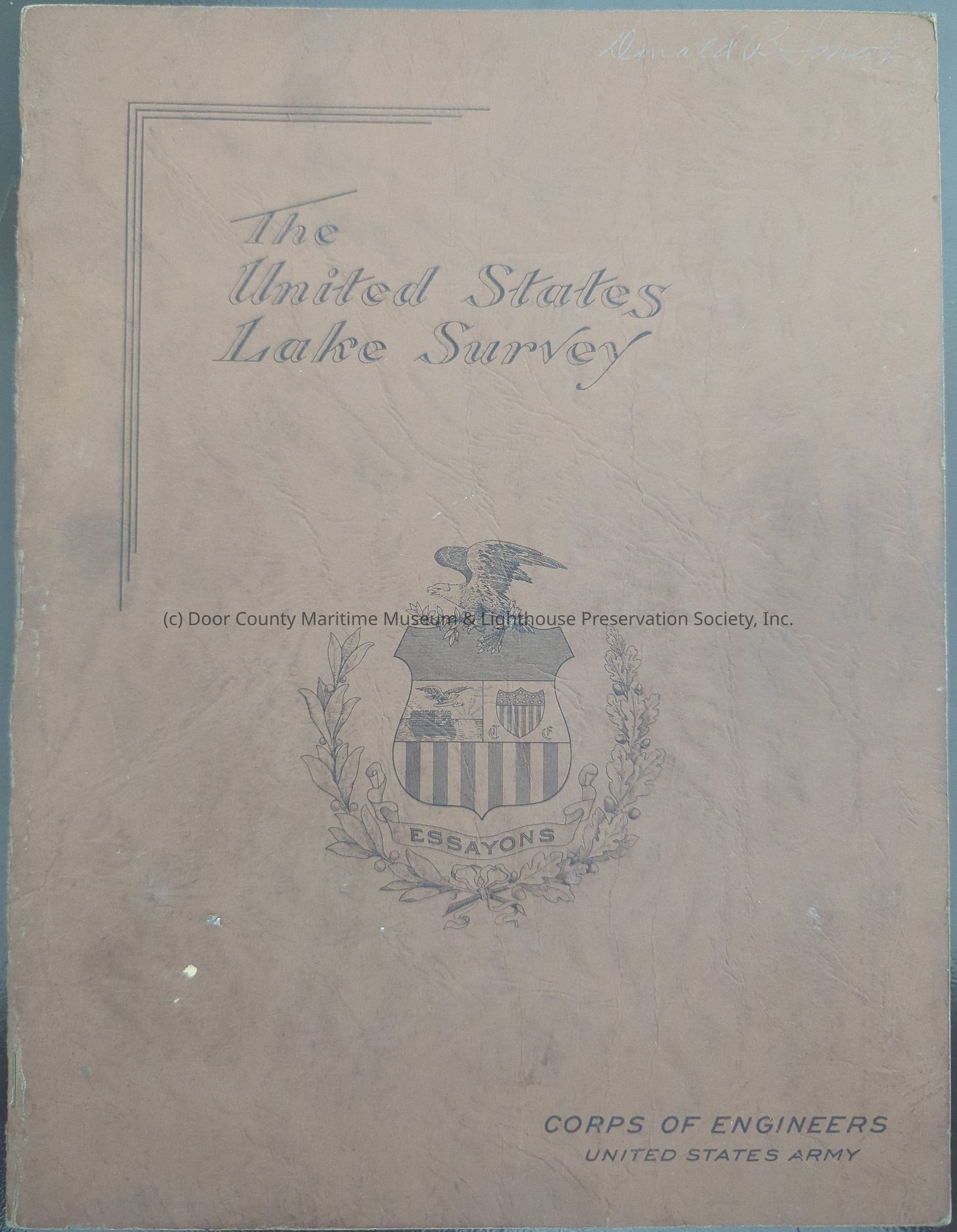 Brown soft cover with black print on the front cover. Contains navigation maps and bullitins of Great Lakes. Outlines the work of the lake survey. Gives brief account of history and illustrates its methods and products.Location