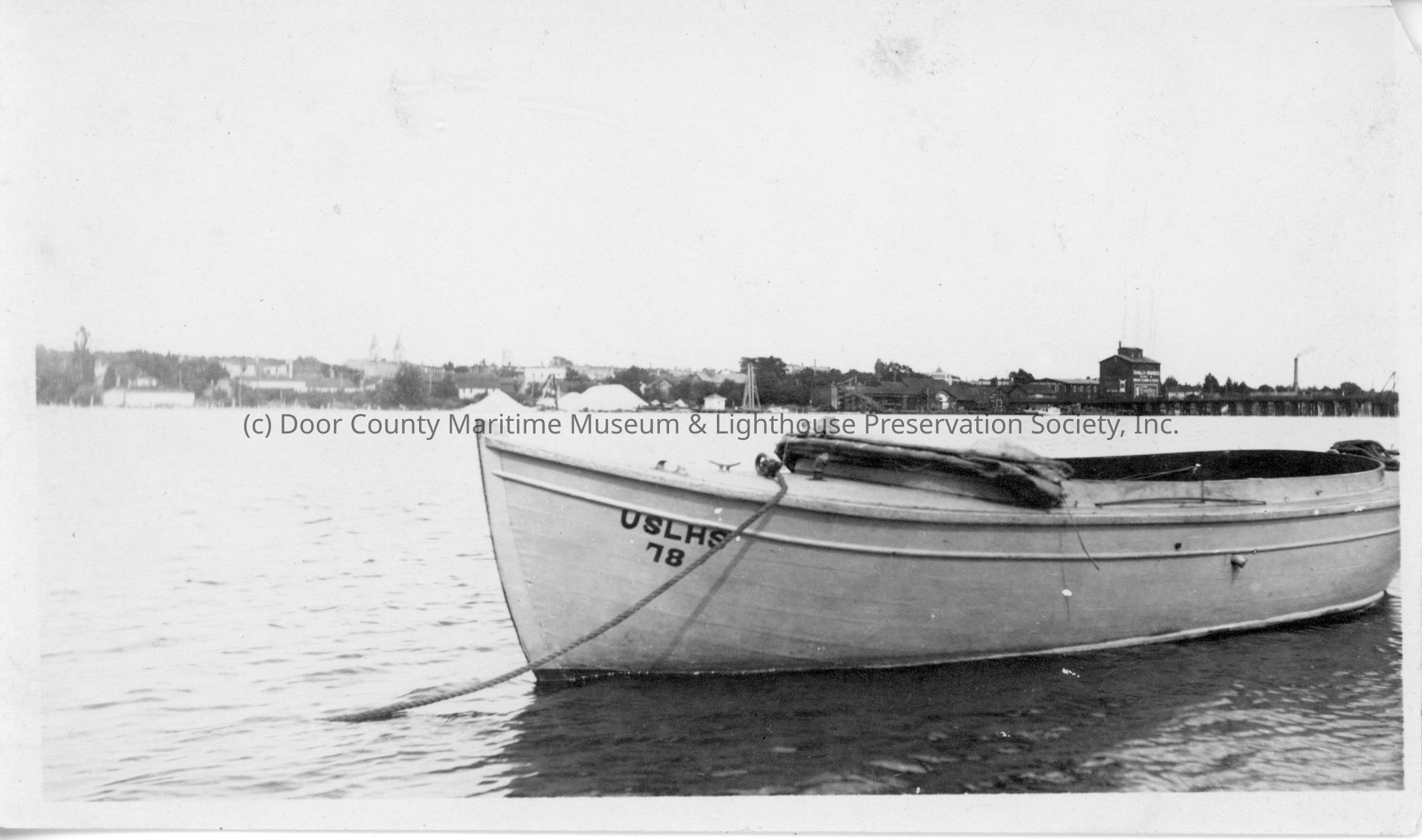 United States Lighthouse Service rowboat docked in Bay of Sturgeon Bay