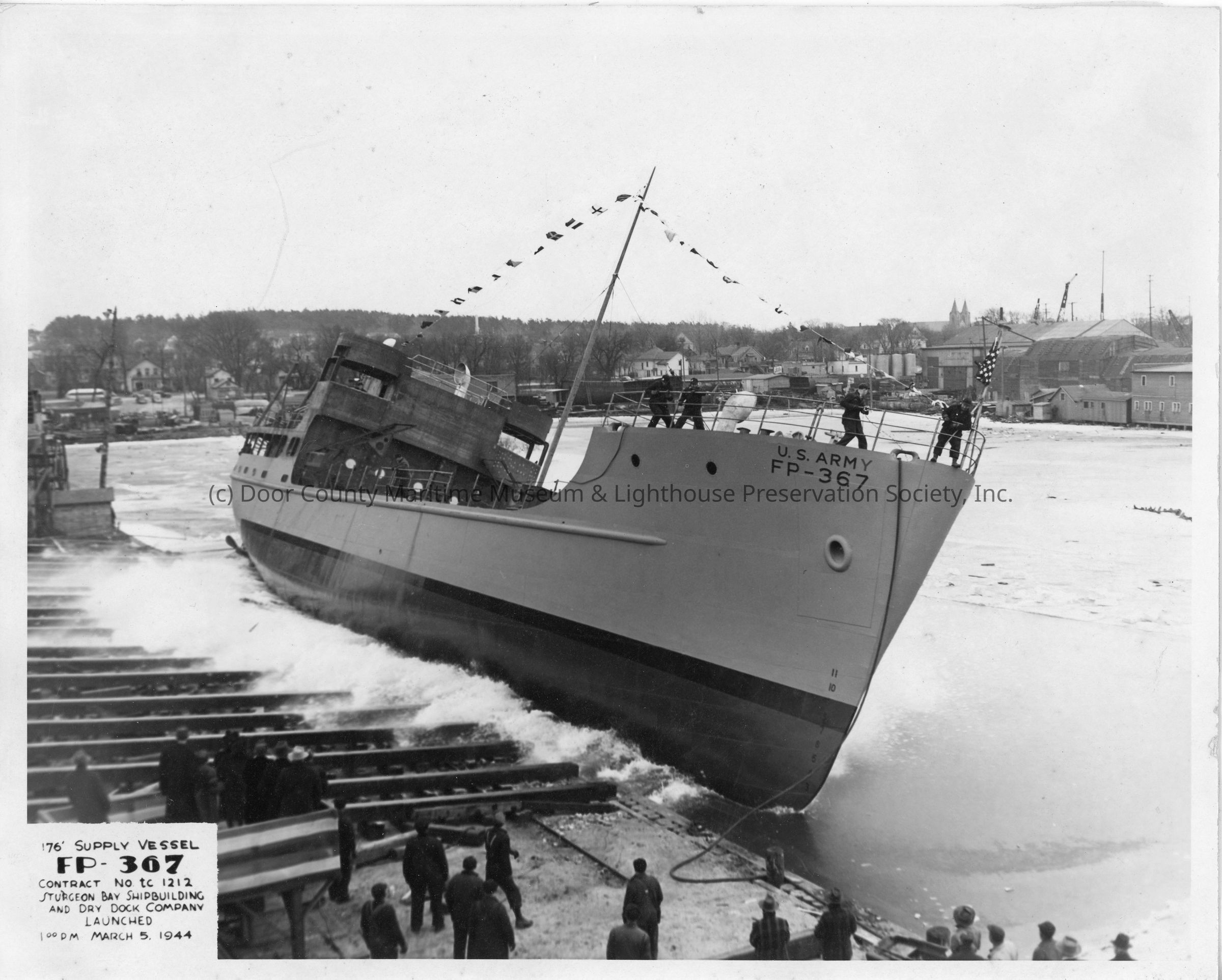 US Army FP-367 launching at Sturgeon Bay Shipbuilding and Dry Dock Company March 5, 1944 1 PMEntry/Object ID