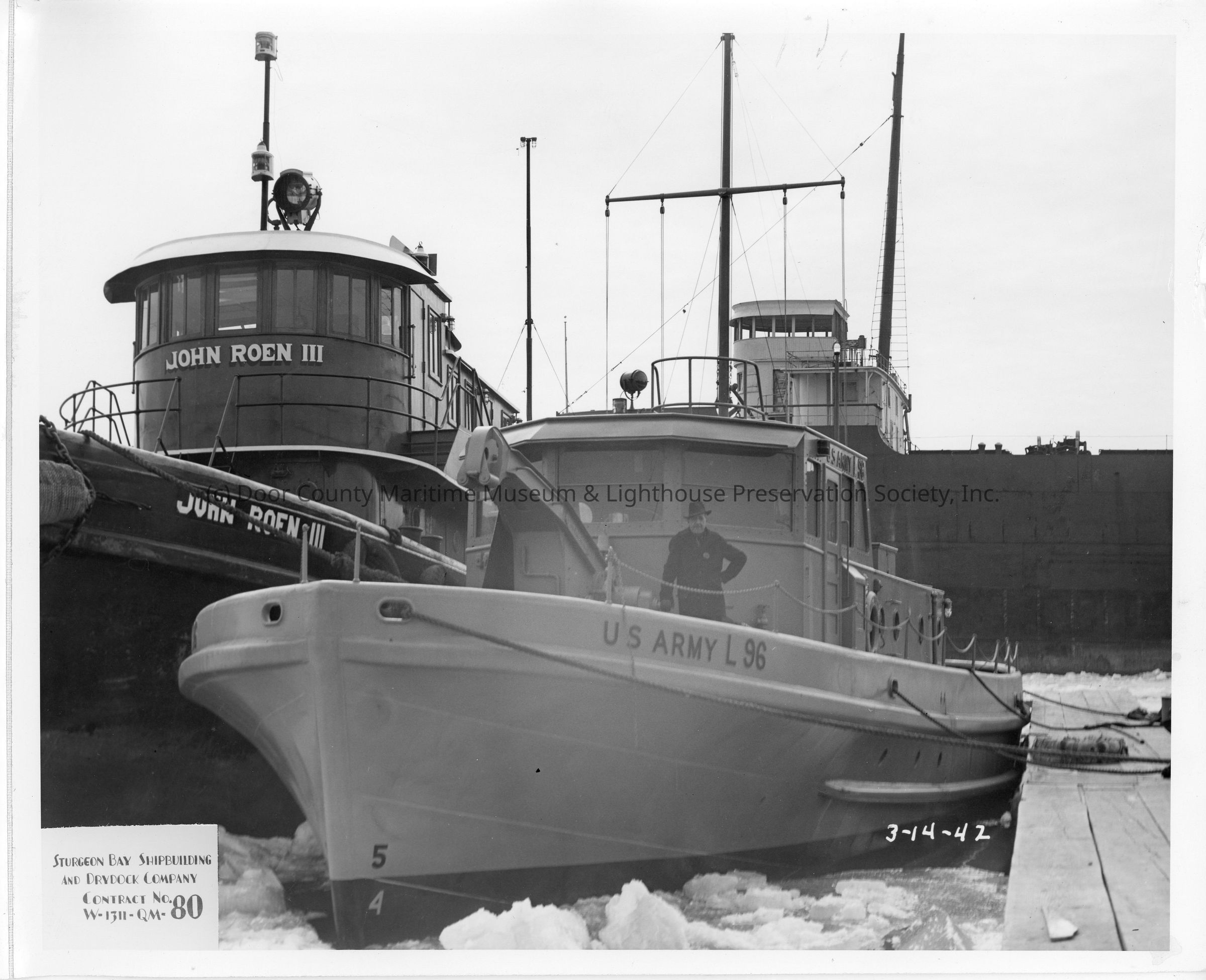 US Army L-96 docked next to John Roen III March 14, 1942Entry/Object ID