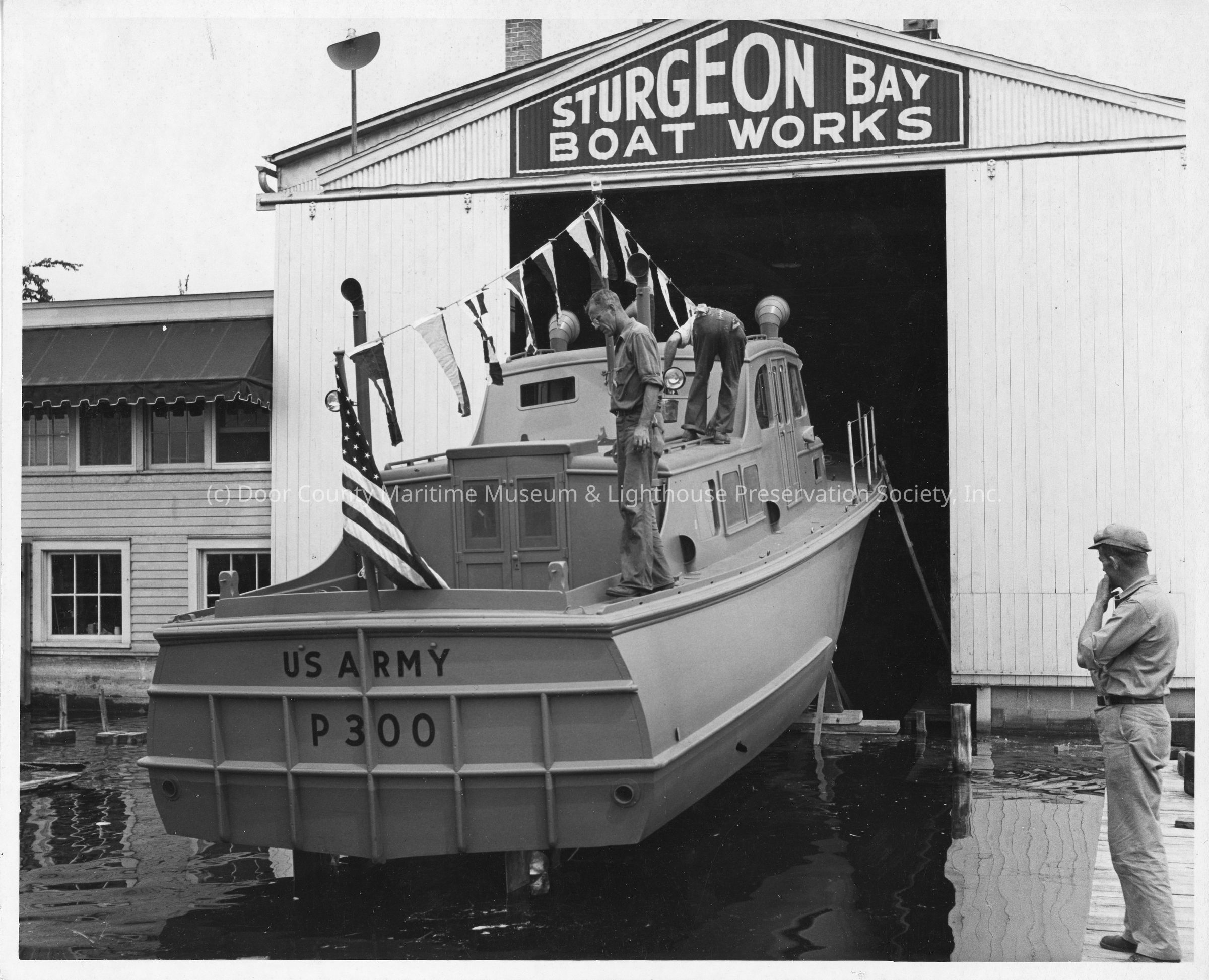 US Army P-300 with Harris Pfeifer standing on dock