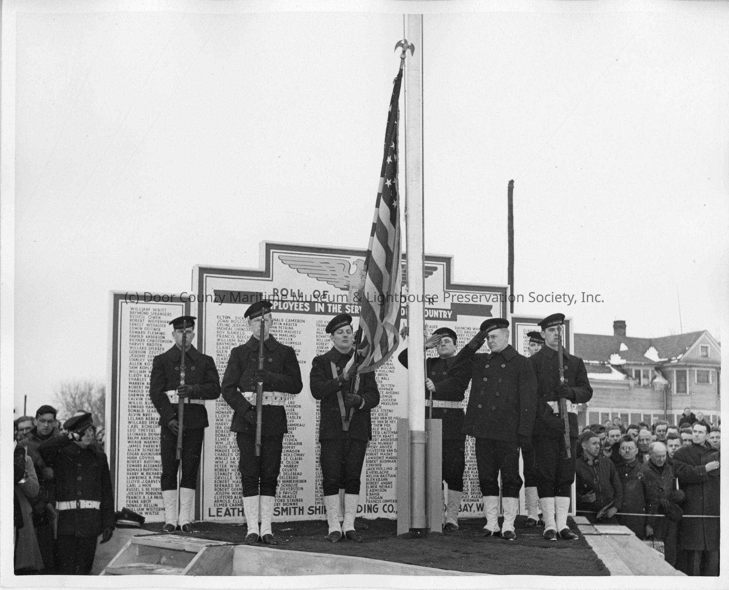 US Coat Guard color guard standing in fornt of L.D. Smith SignEntry/Object ID