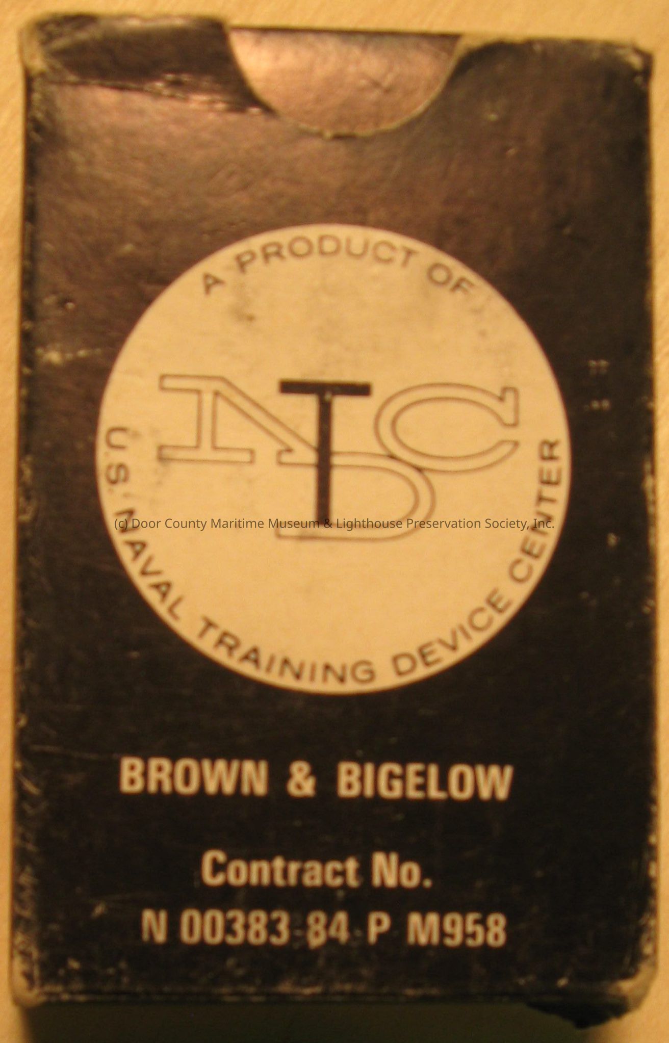 Box cover reads: A product of TNDC, Navel Training Device Center, Brown & Bigelow, contract No. N00383 84 M958
