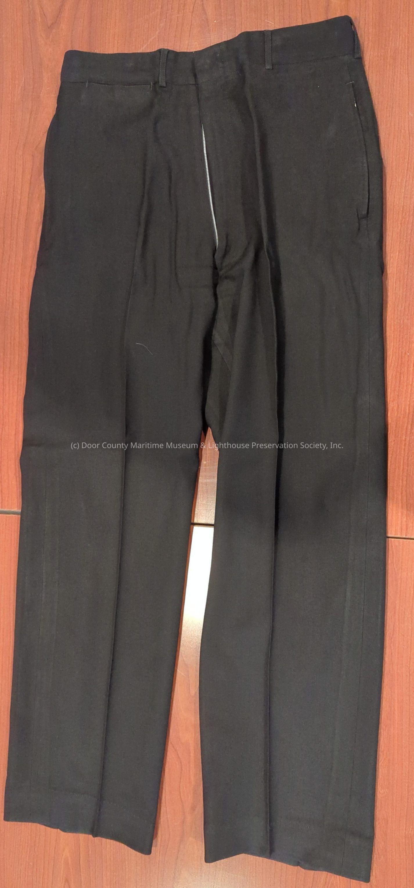USCG uniform pants: overall color dark blue; belt loops; zipper fly.