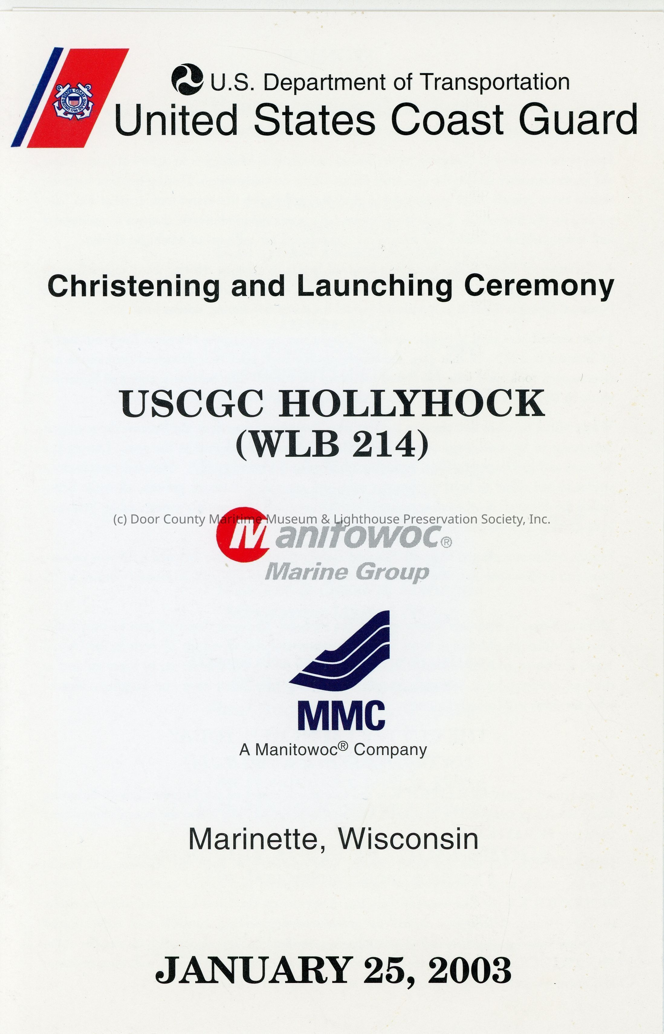 USCGC Hollyhock launching ceremony