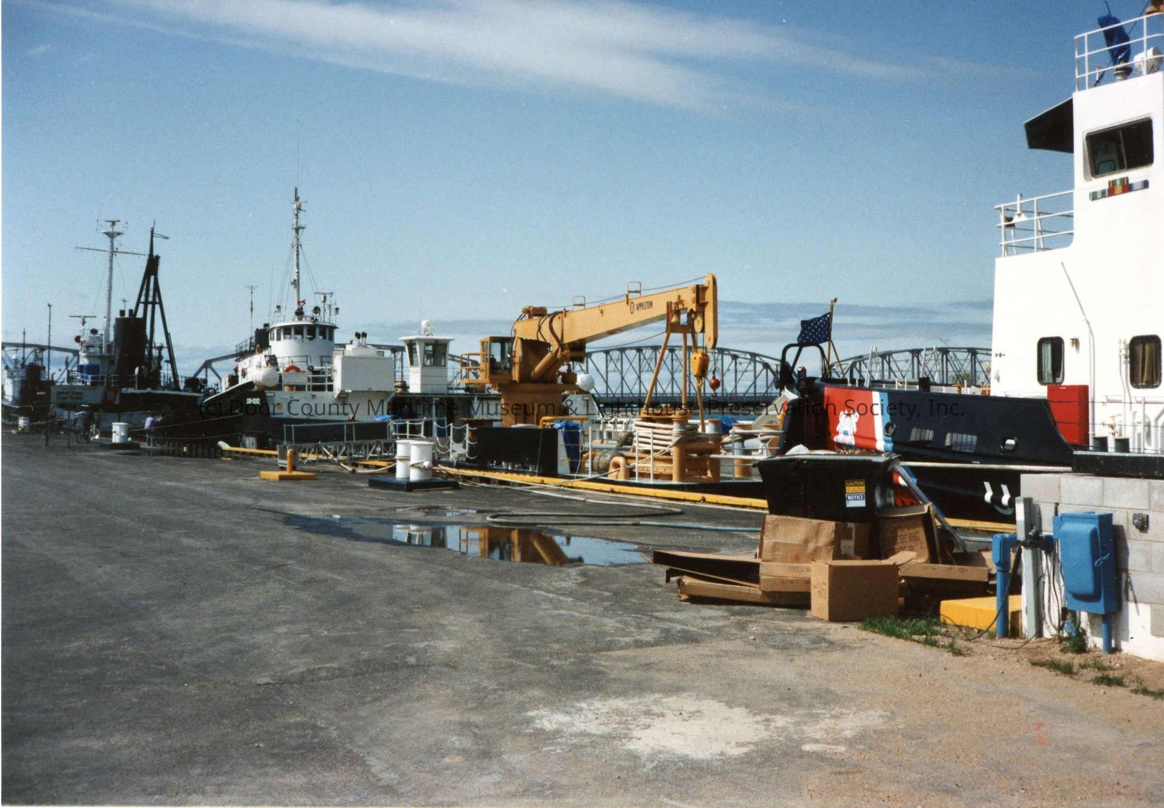 USCGC Mobile Bay and barge 1002 in Sturgeon Bay 1992