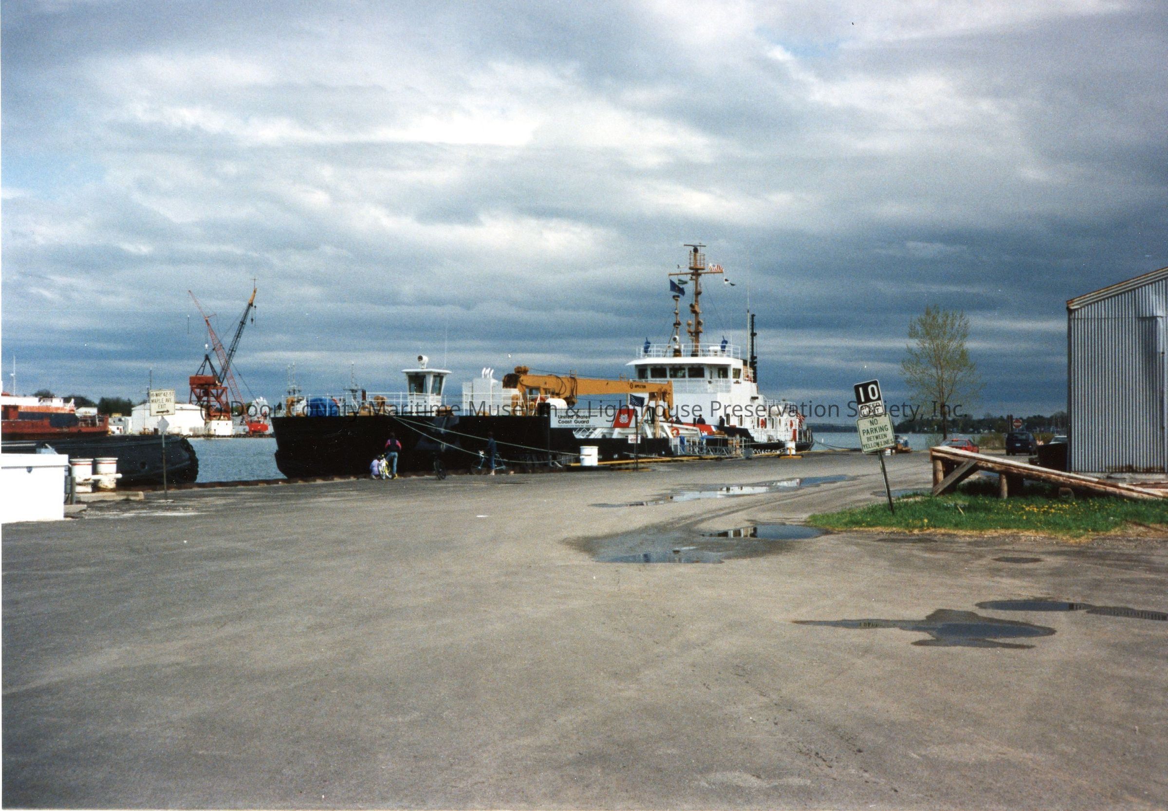 USCGC Mobile Bay and barge 1002 in Sturgeon Bay 1992