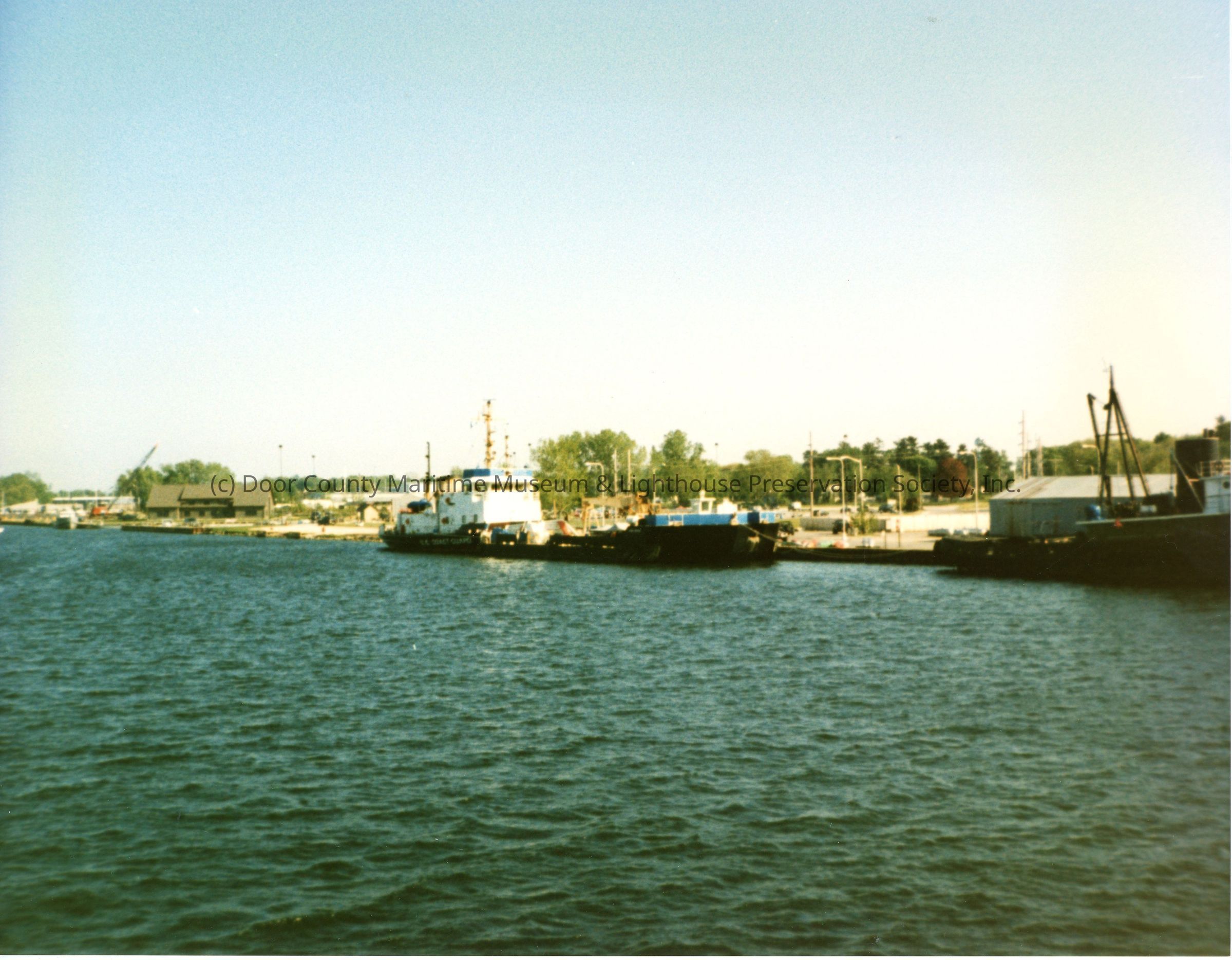 USCGC Mobile Bay and barge 1002 in Sturgeon Bay 1994