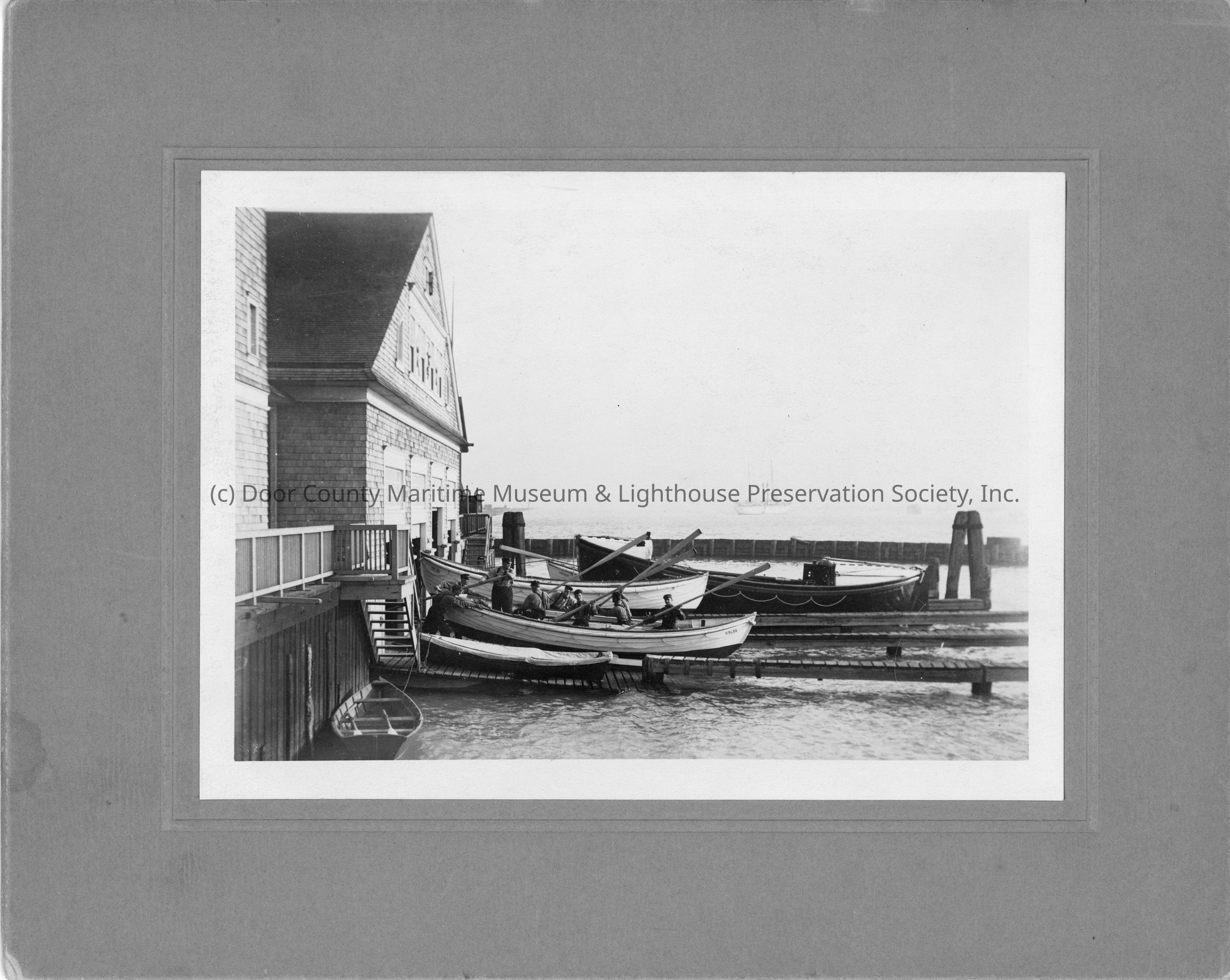 Men in surfboat at the United States Life Saving Statin in Grand Haven MichiganLocation