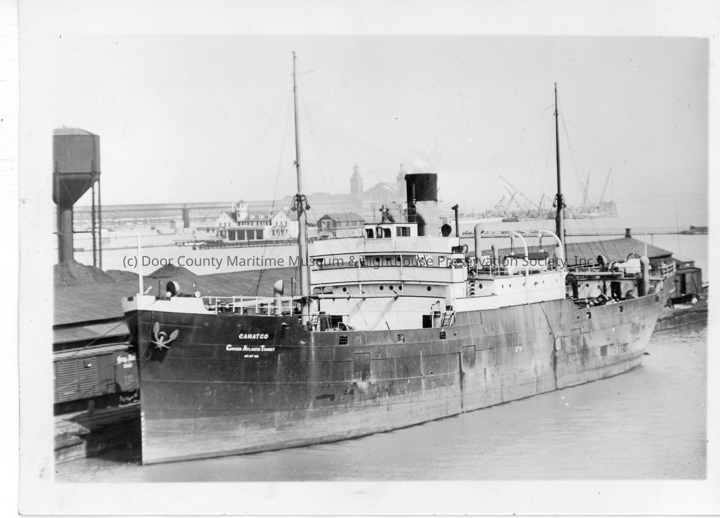 Vessel Canatco docked next to train cars