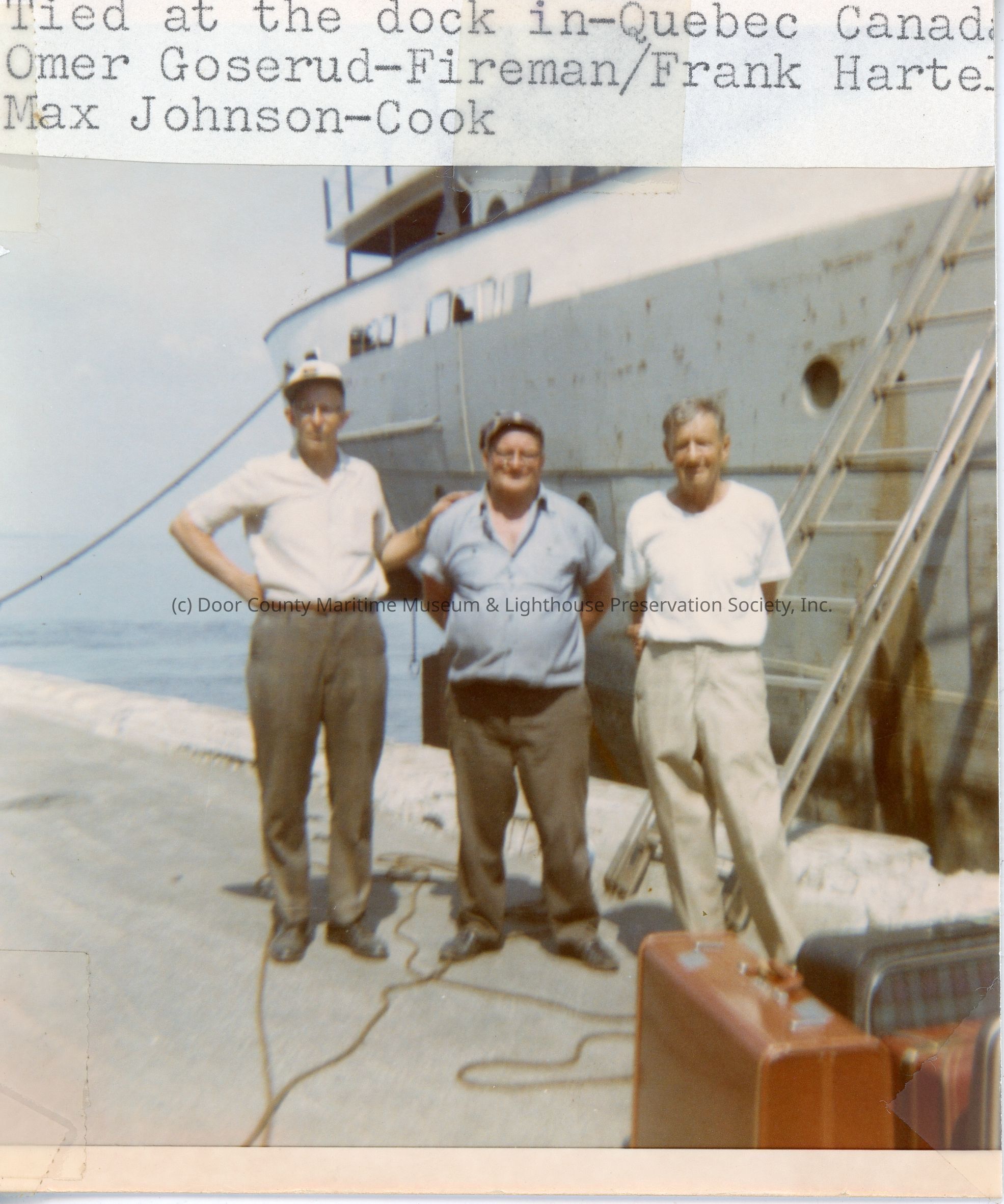 Men include Fireman Omer Goserud, Engineer Frank Hartel, and Cook Max JohnsonLocation