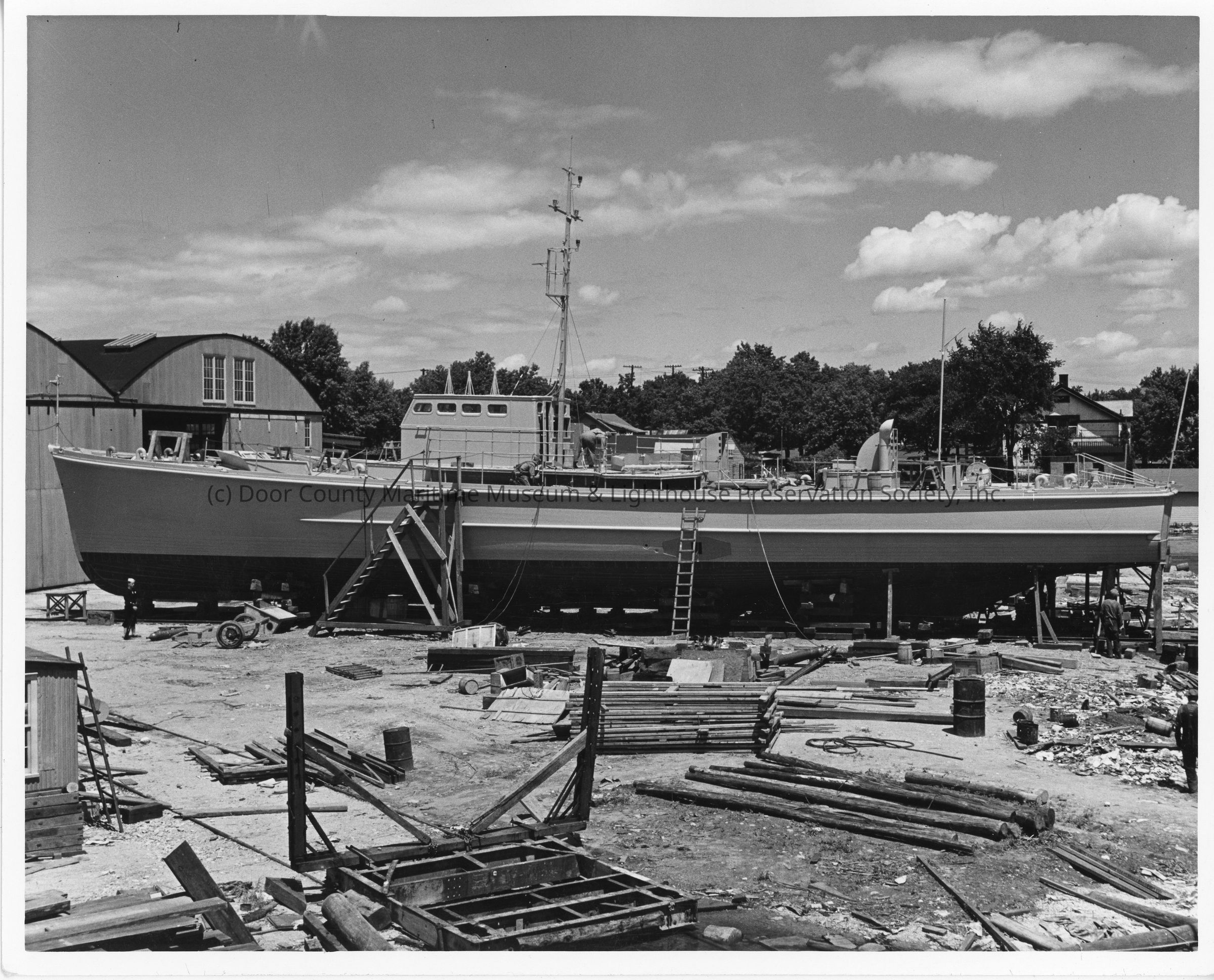 Vessel under construction on land at Peterson Boat Works July 6, 1942