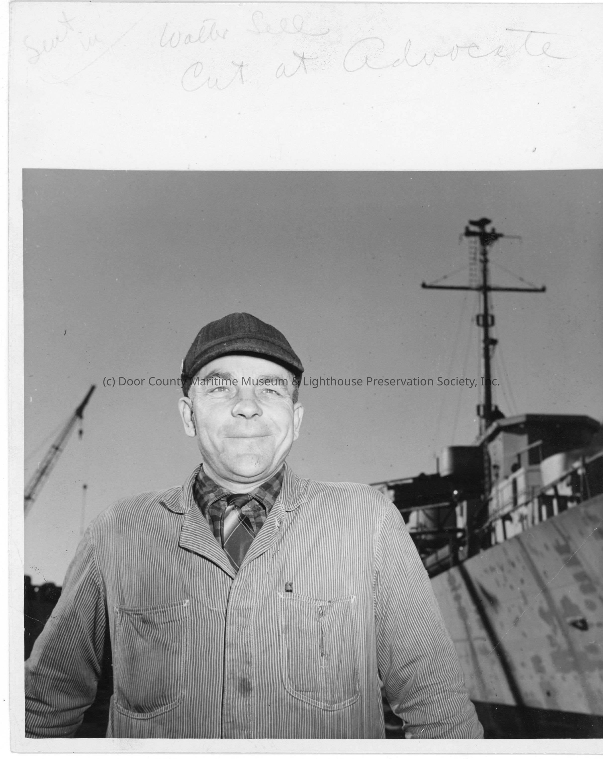 Walter Sell posing in front of ship
