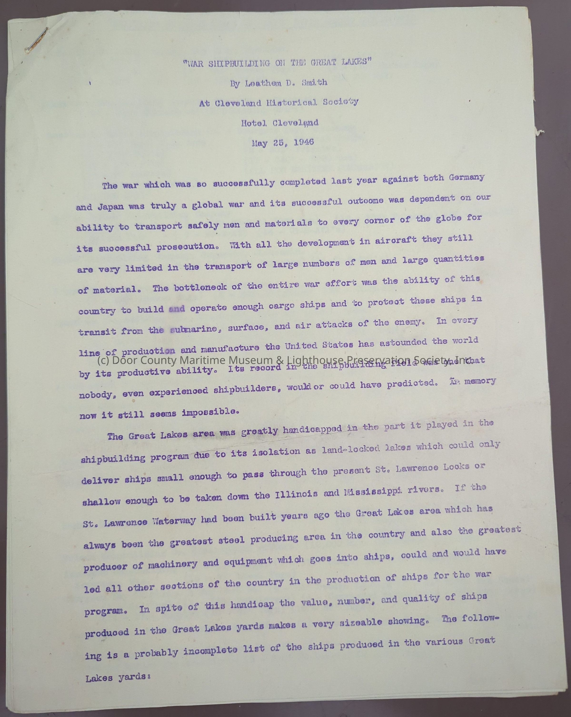 War Shipbuilding on the Great Lakes by Leathem Smith