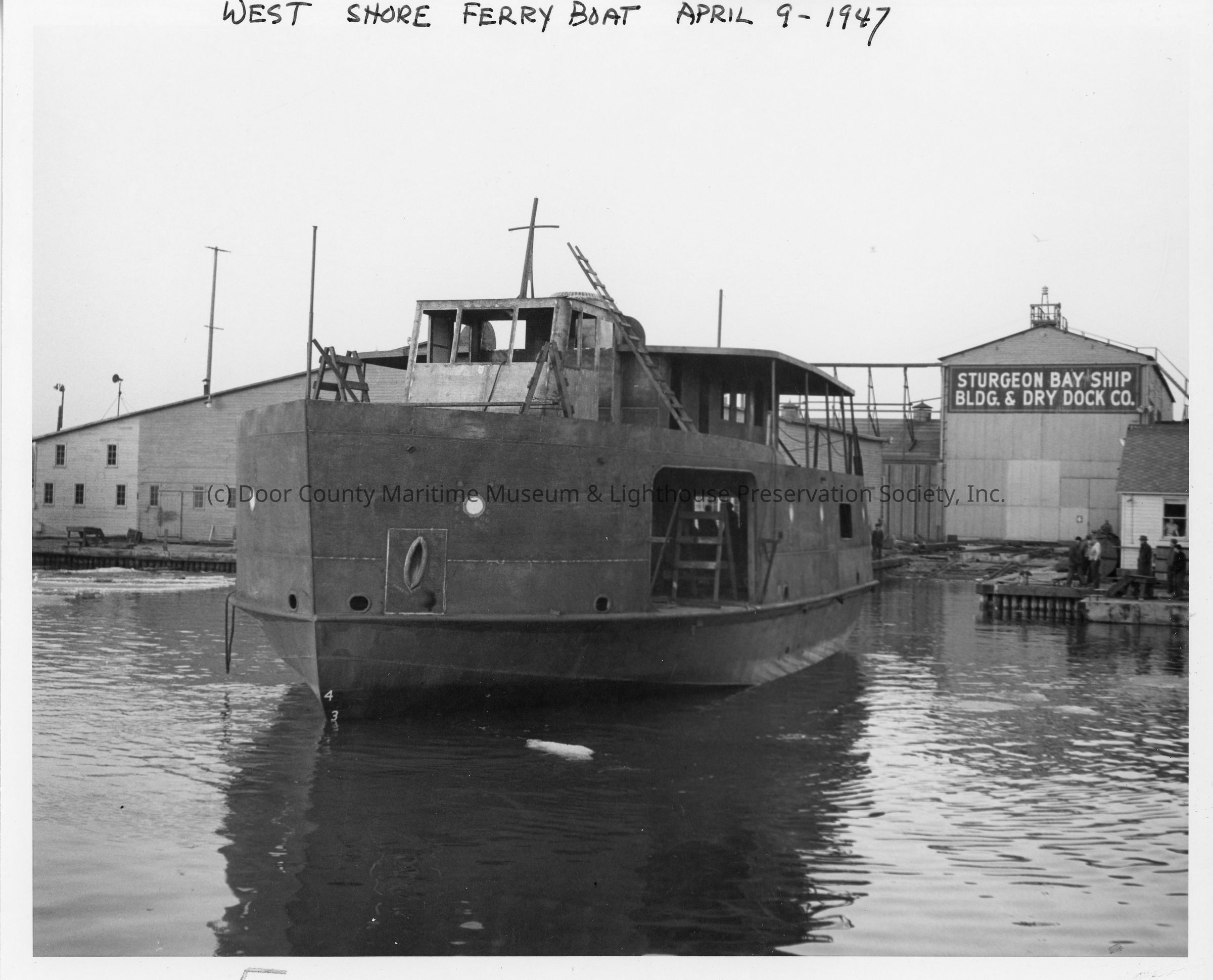 Westshore Ferry Boat floating but not finished in front of SBSB&DD Co.Entry/Object ID