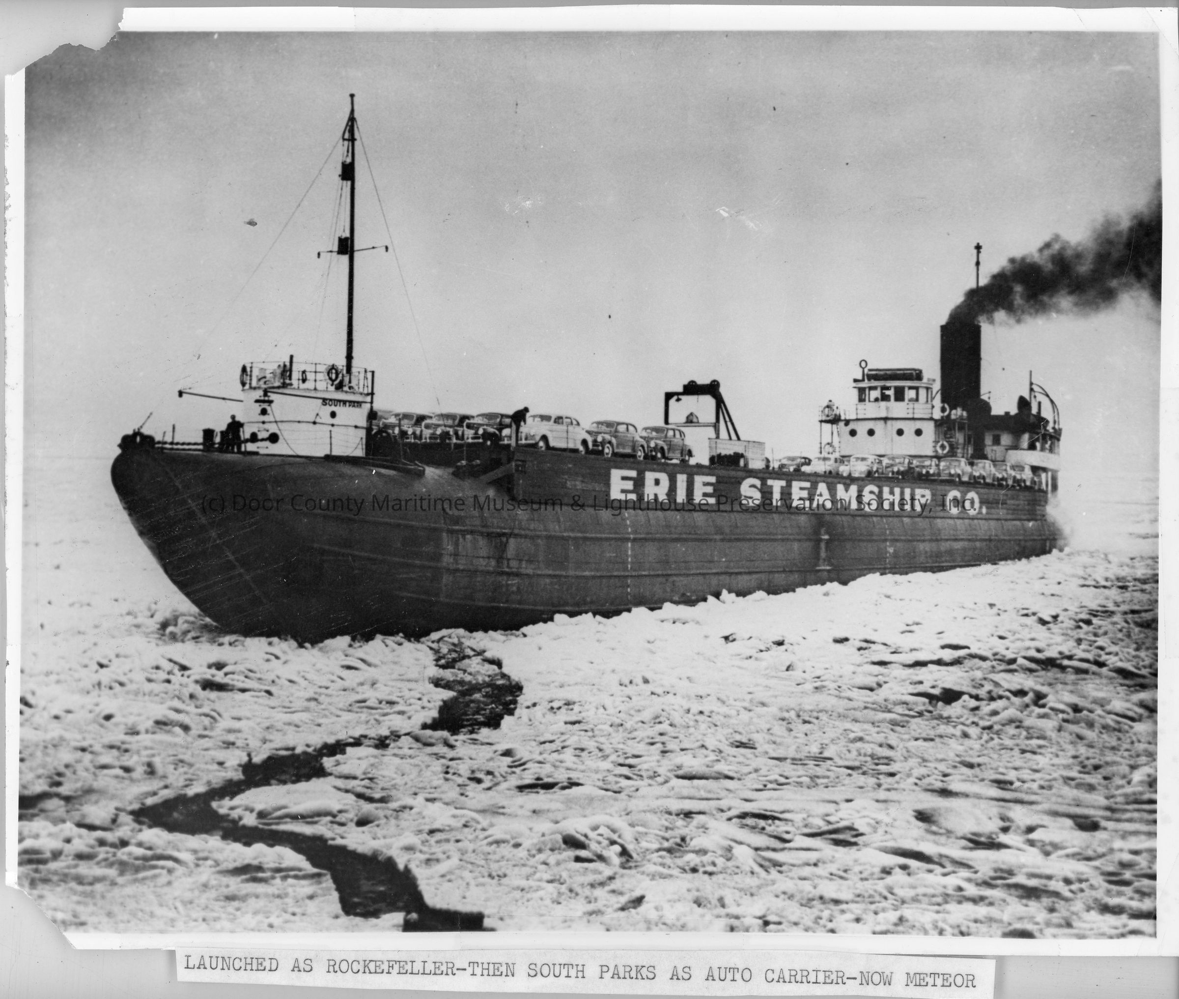 Whaleback ship South Park underway in ice 1940