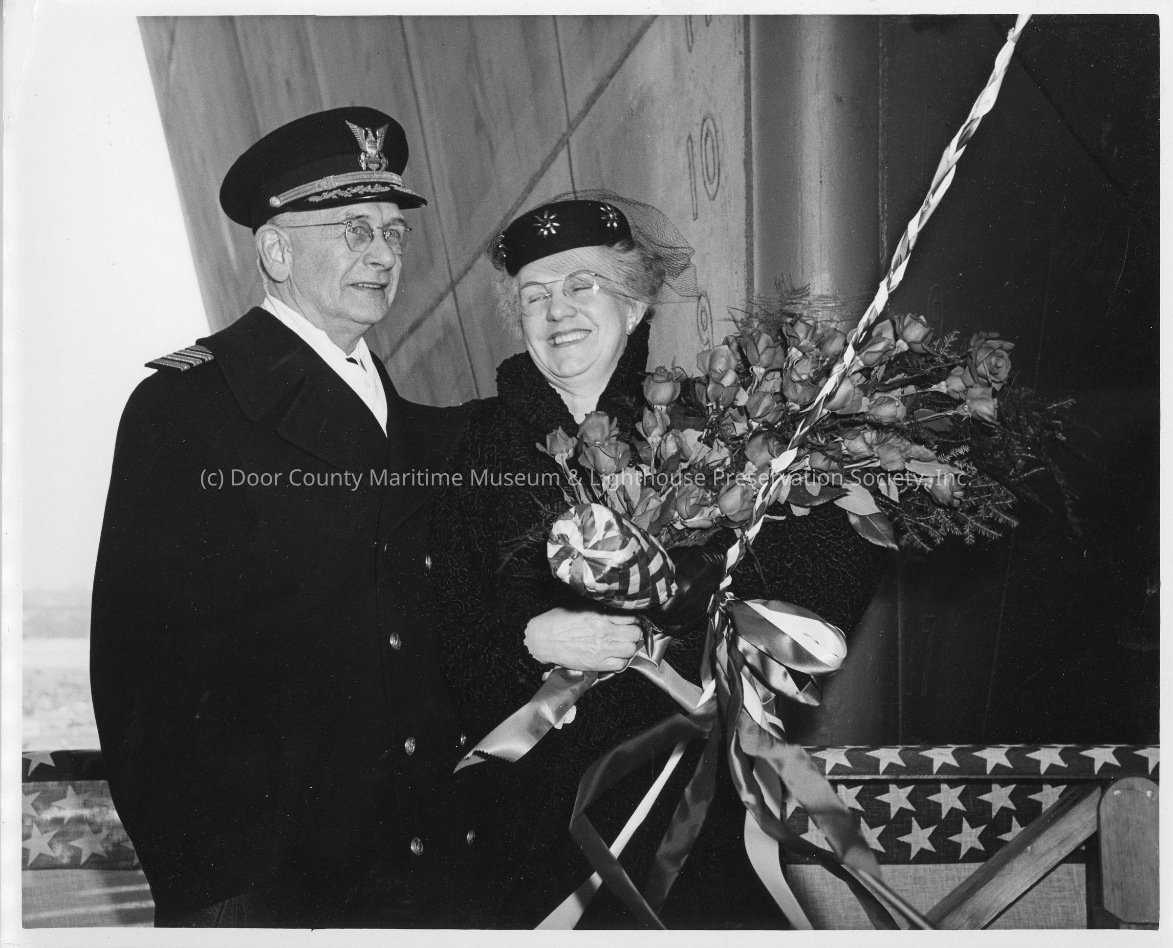 Woman and sailor at christening of K-215 Tipton