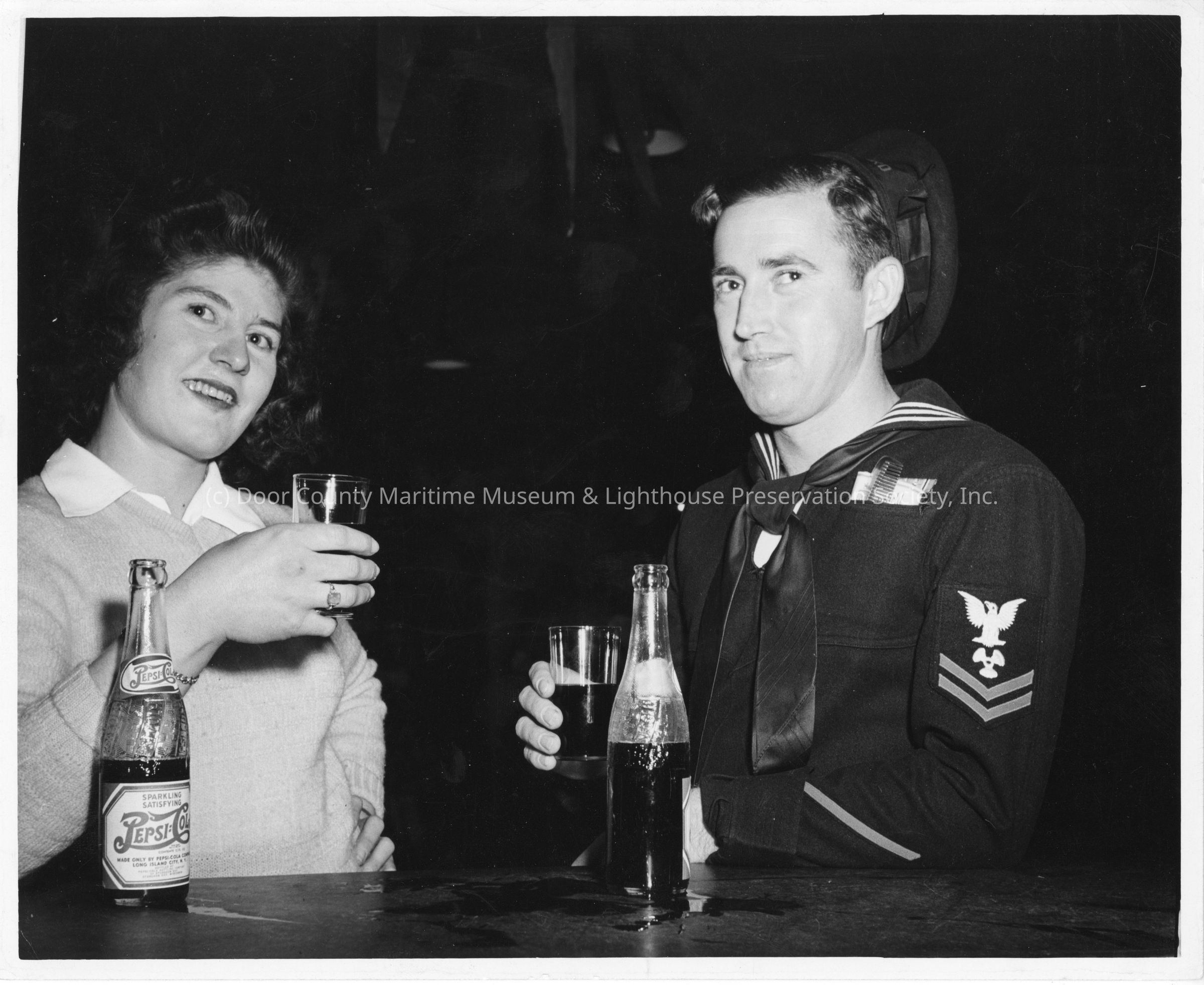 Woman and serviceman drinking Pepsi