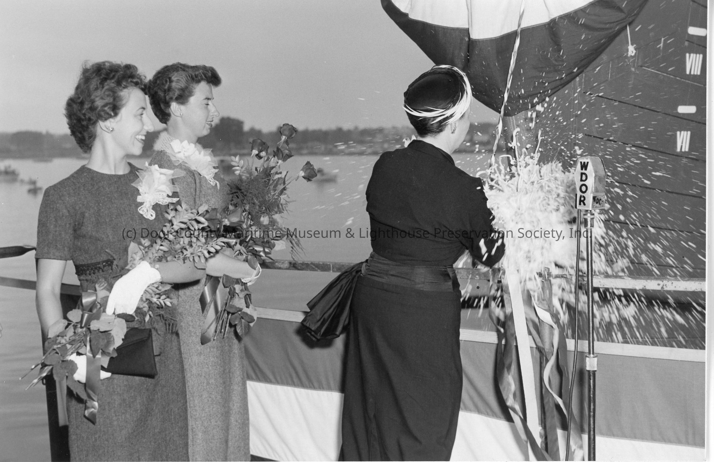 Woman christening boat