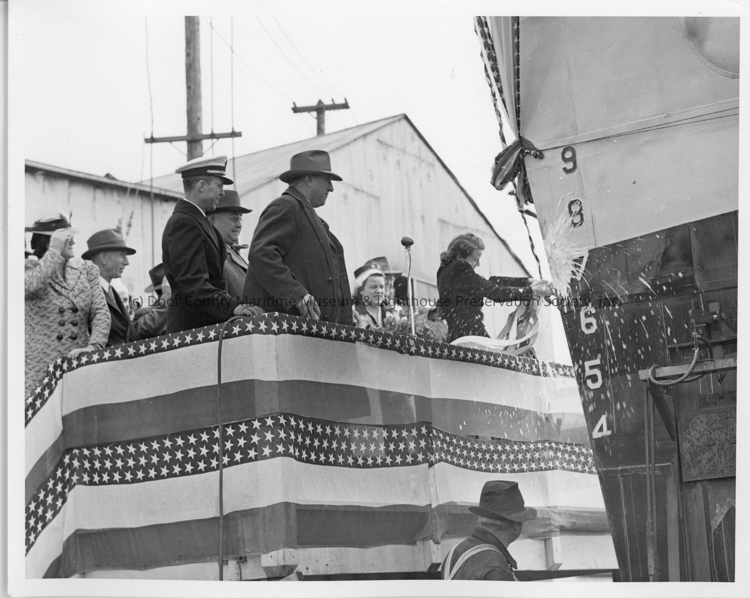 Woman christening PC-588 at Leathem D. Smith Shipbuilding Co.Entry/Object ID