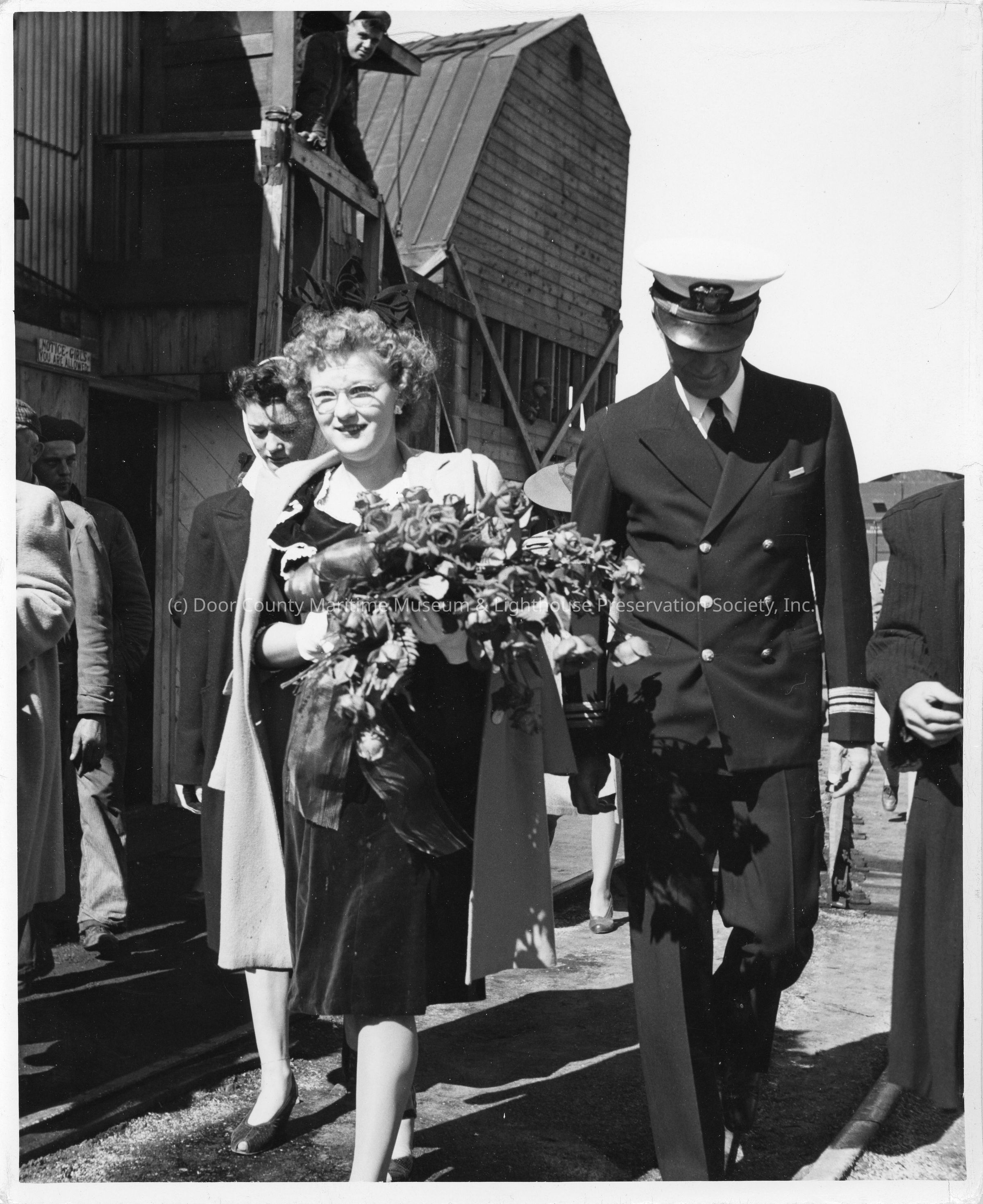 Woman holding roses at christening of PC-1178Entry/Object ID