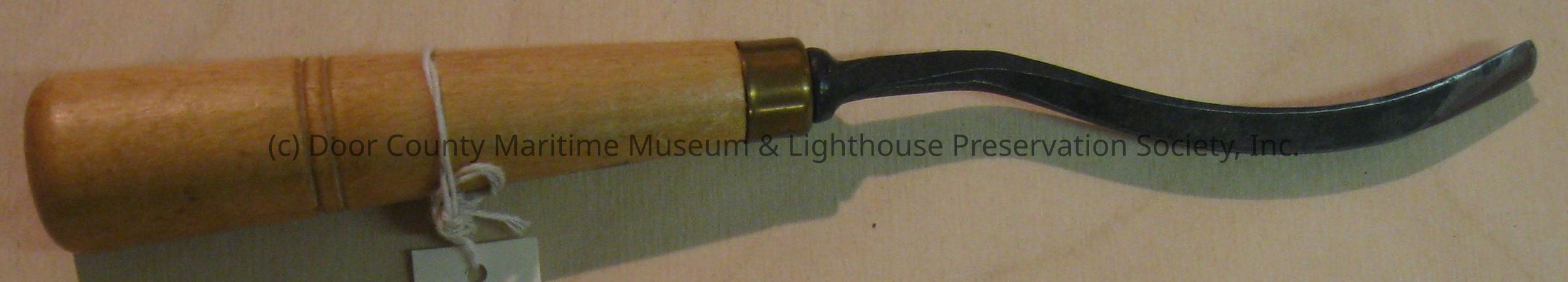 Curved chisel, wood handled metal v shaped end.