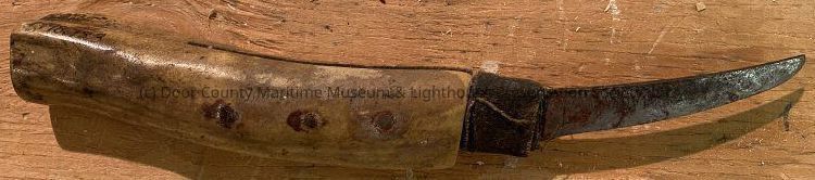 Cream colored bone handle with gray curved blade