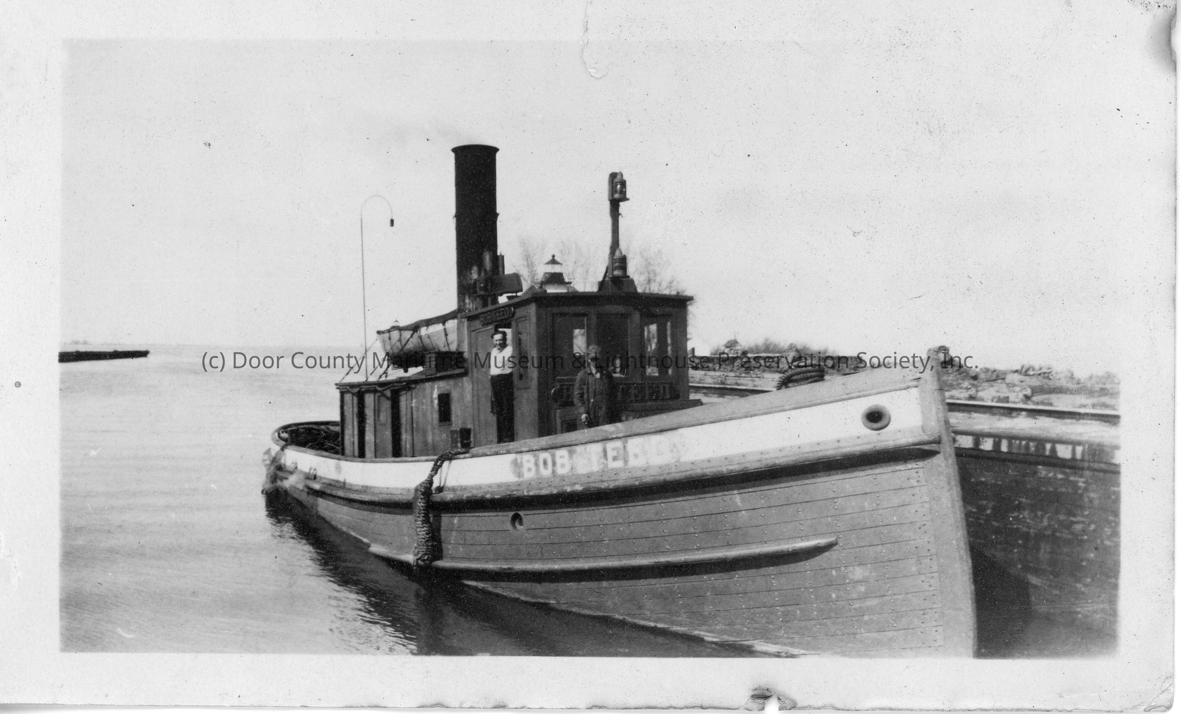 Wooden tug Bob Teed with two men on boardEntry/Object ID